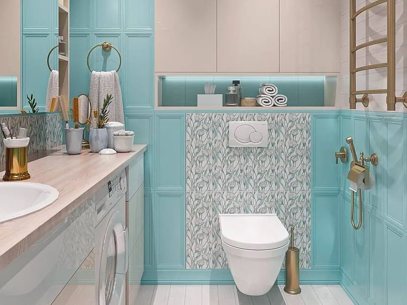 Стиль тиффани в ванной комнате с декоративной зоной возле унитазаИсточник roomester.ru