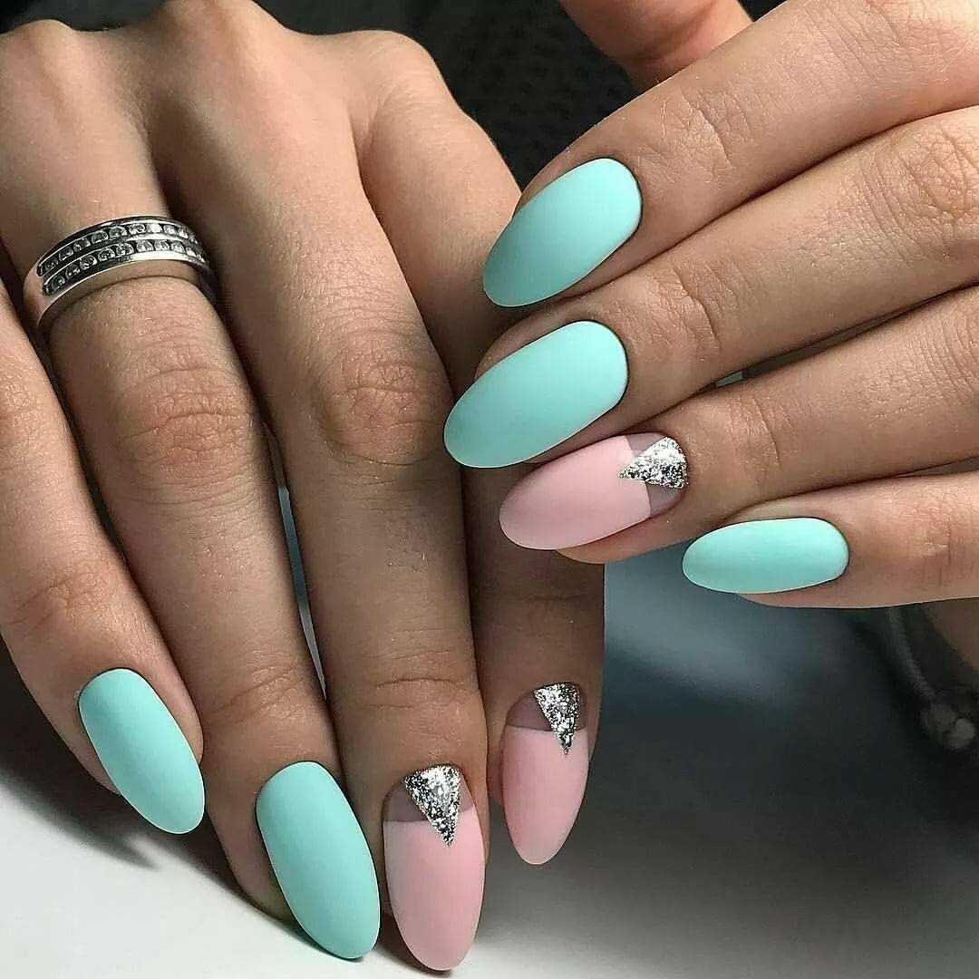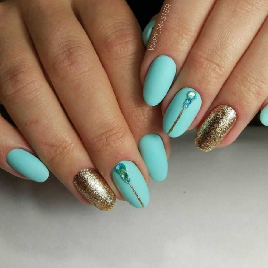 Например, можно украсить блестками кончик безымянного ногтя. Особым шармом выделяется дизайн Тиффани с матовым эффектом.