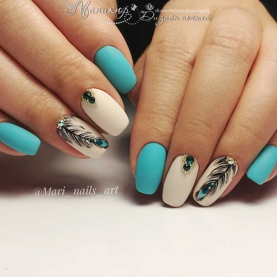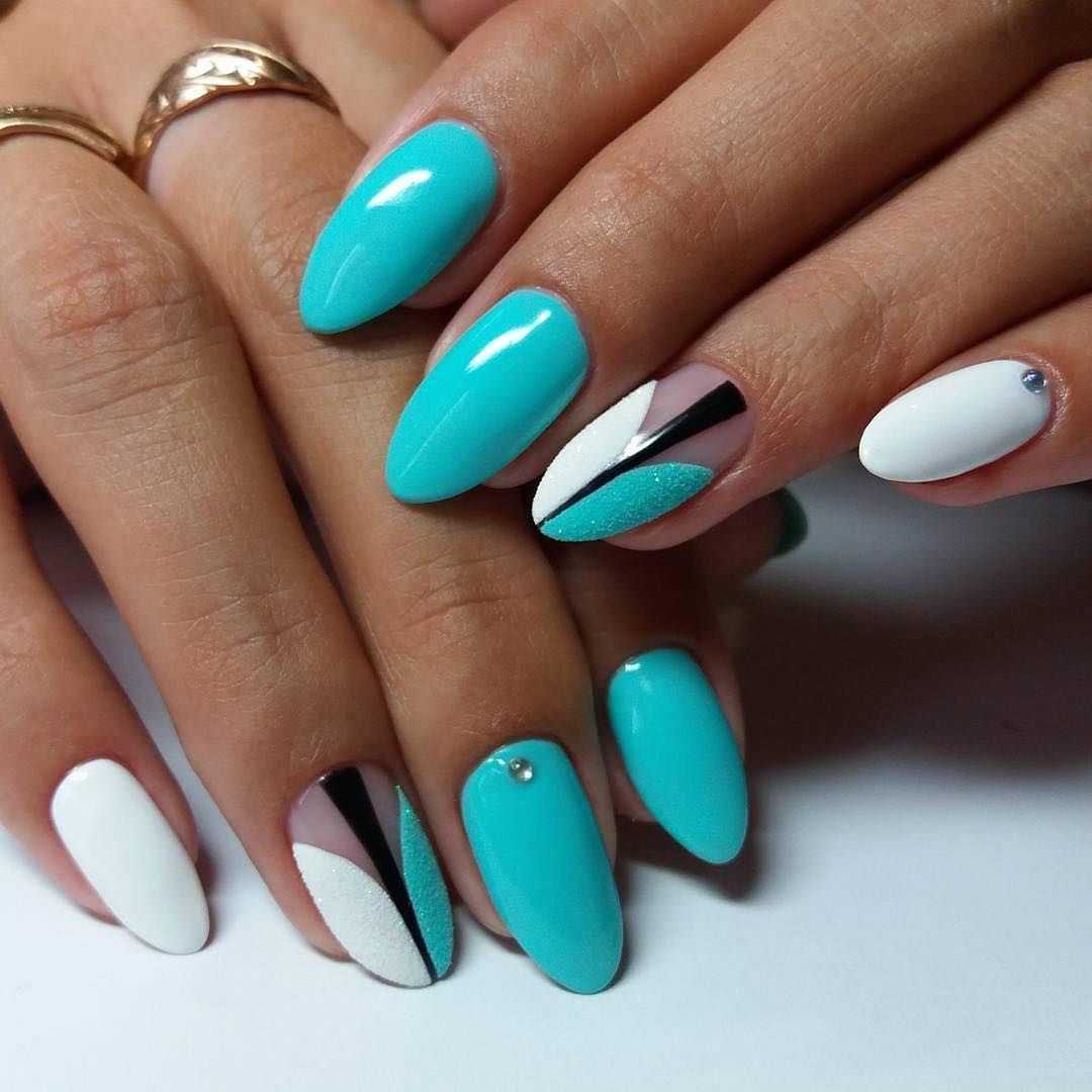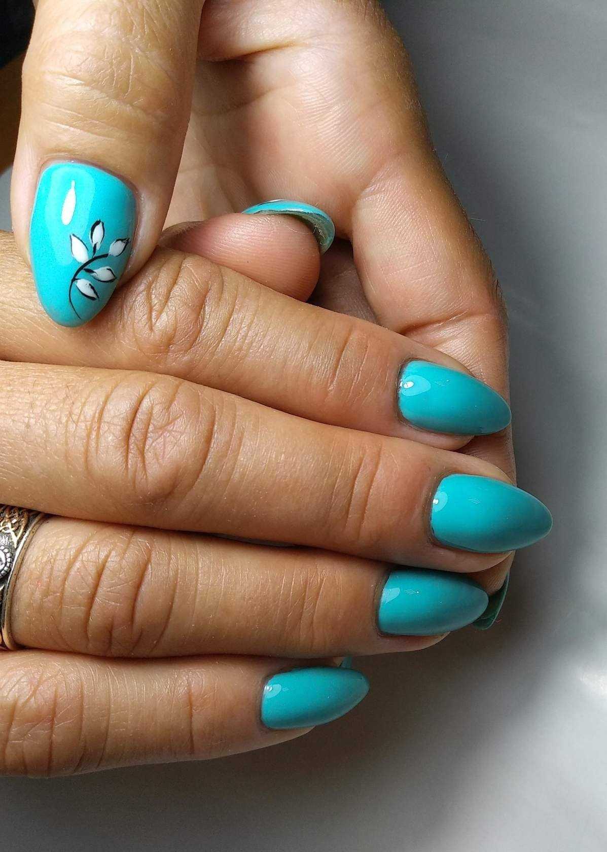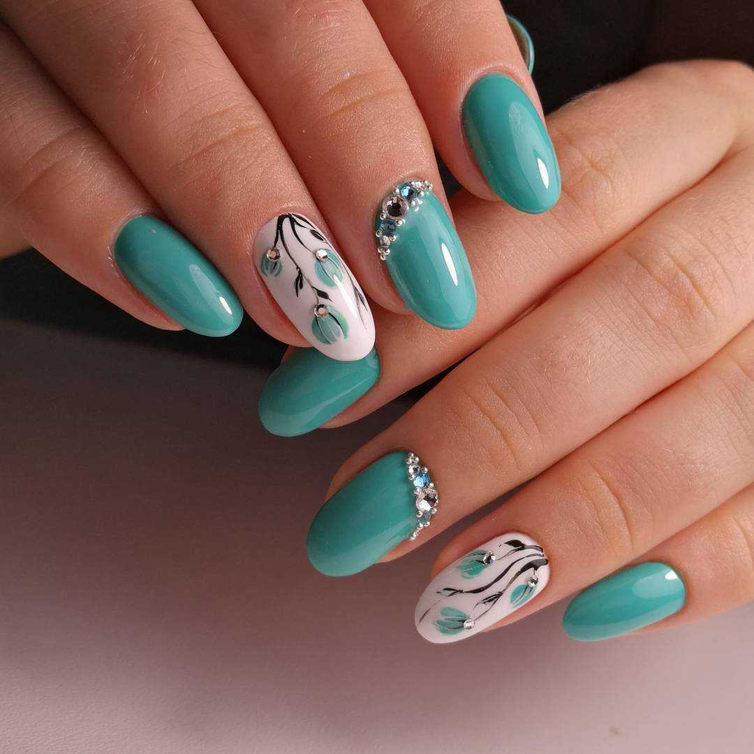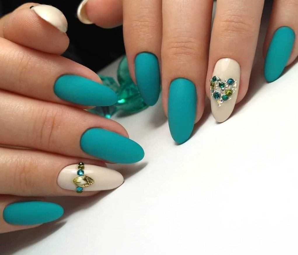 В маникюре может быть использован не только бирюзовый цвет, но и различные его оттенки в комбинации с другими цветами.