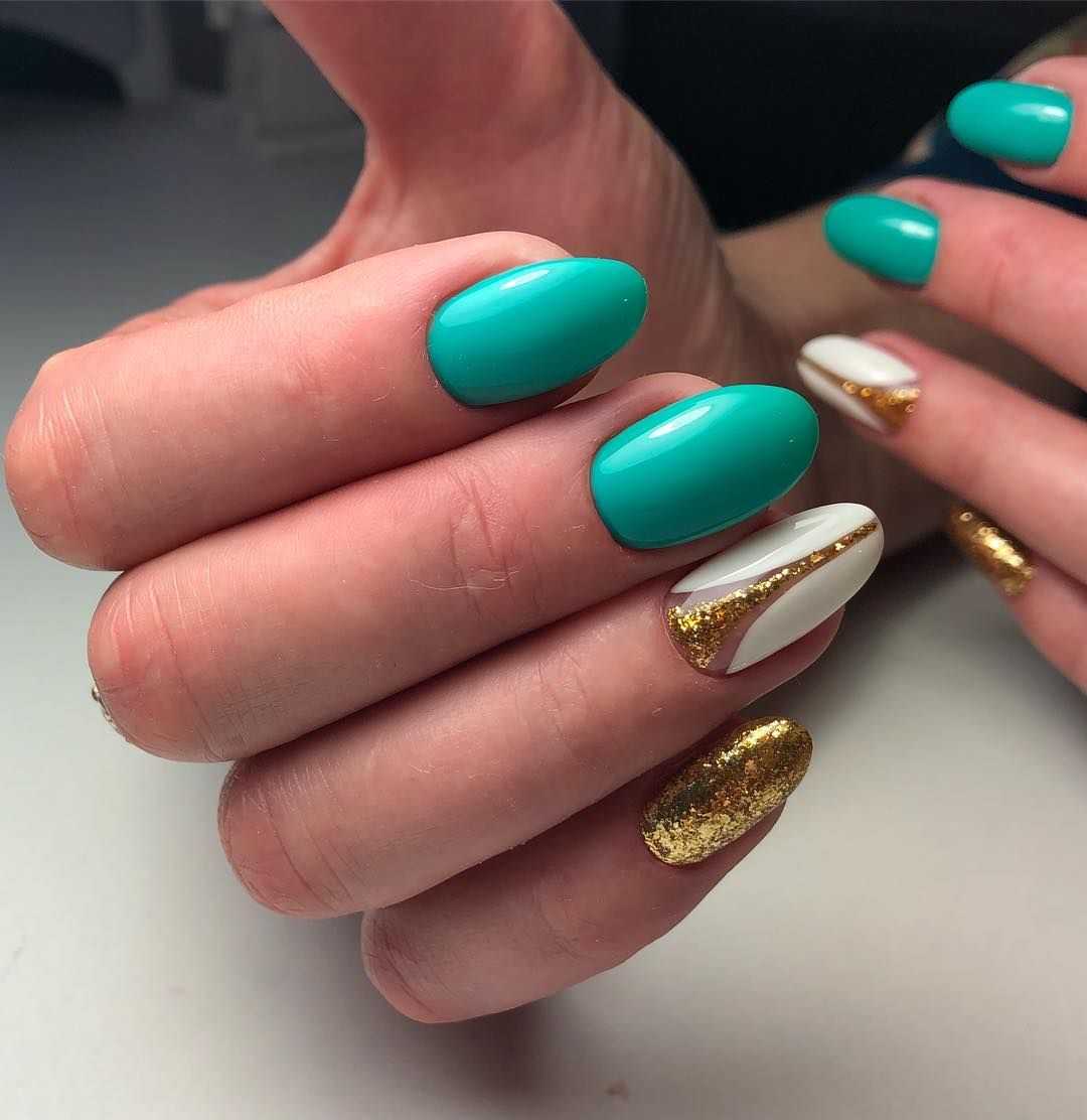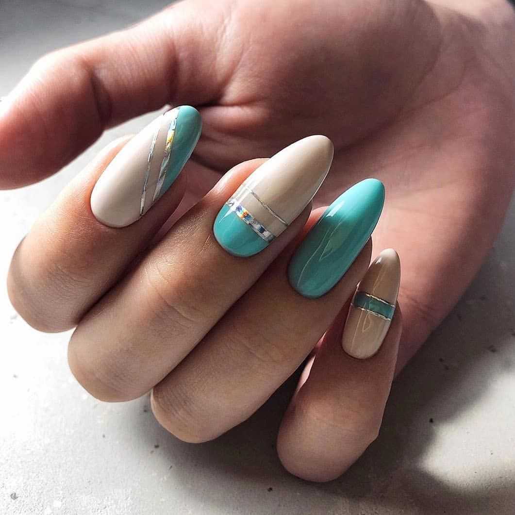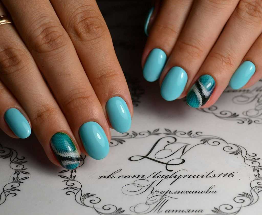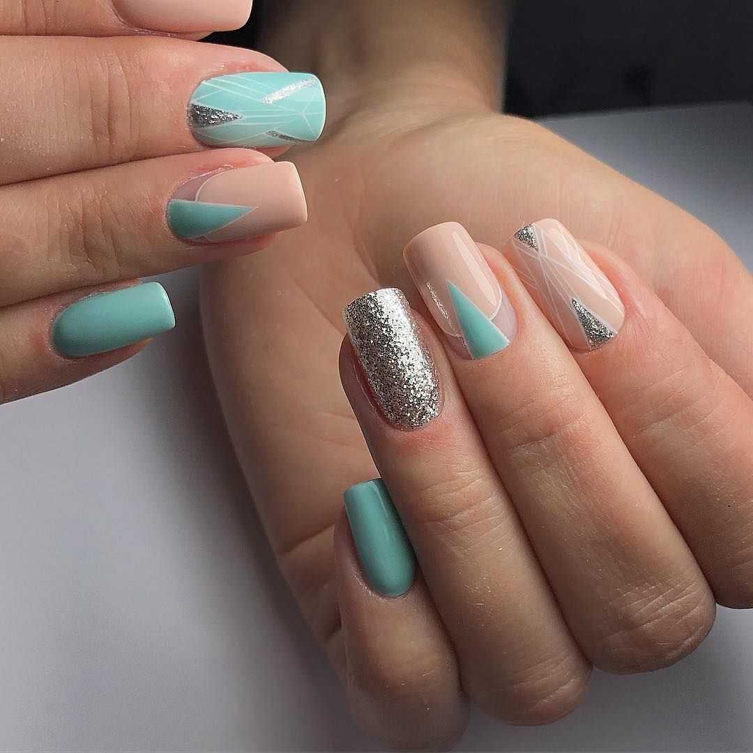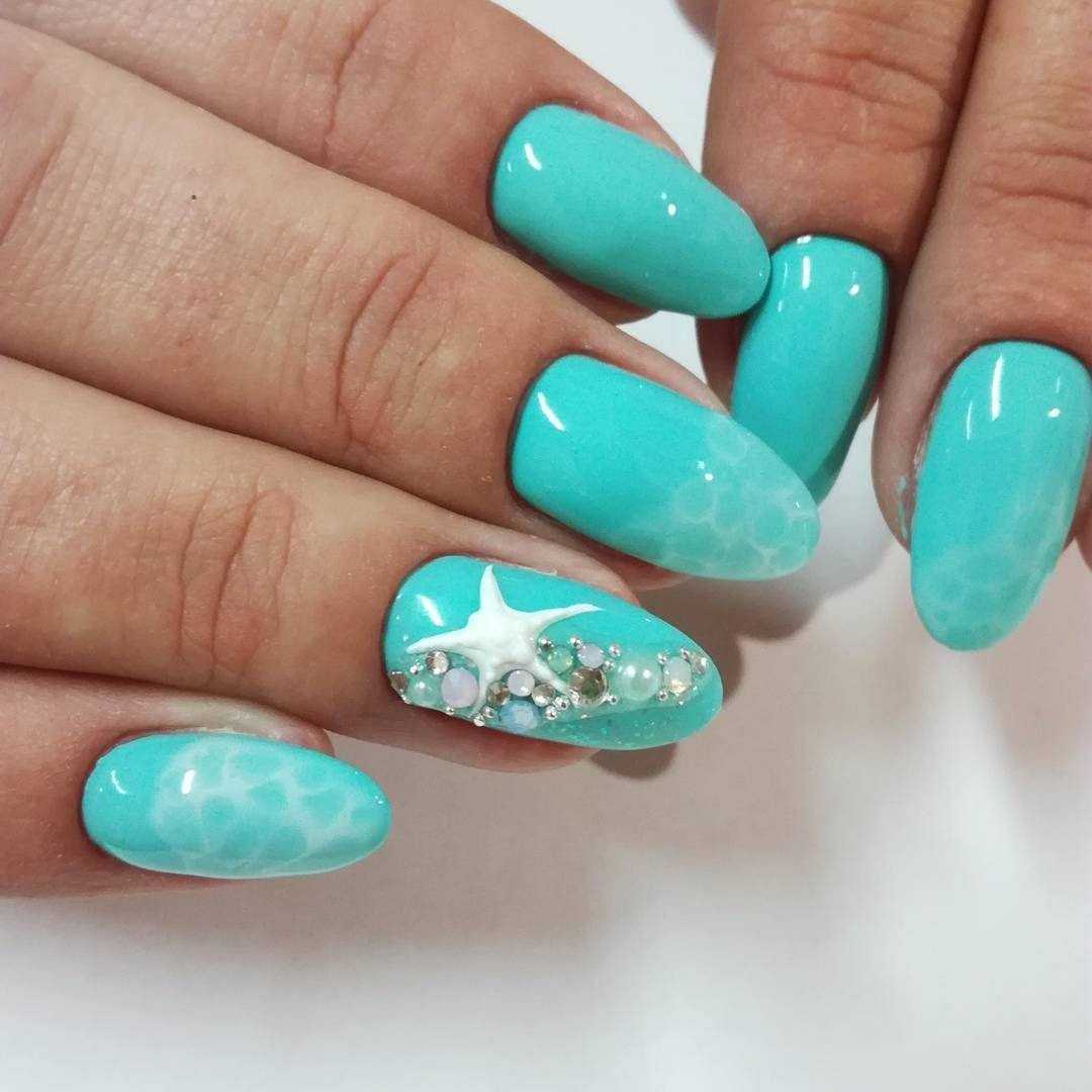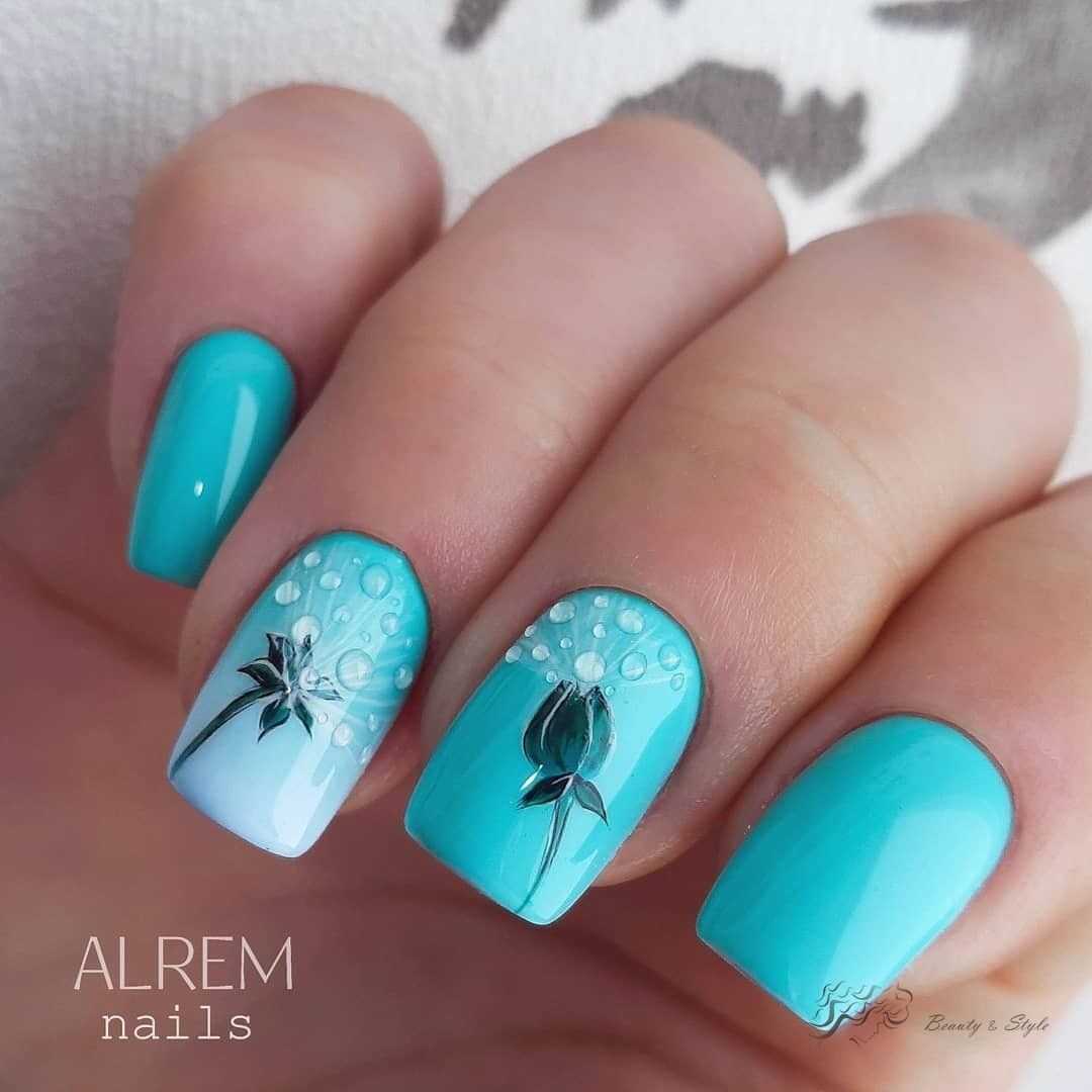 В маникюре может быть использован не только бирюзовый цвет, но и различные его оттенки в комбинации с другими цветами.
