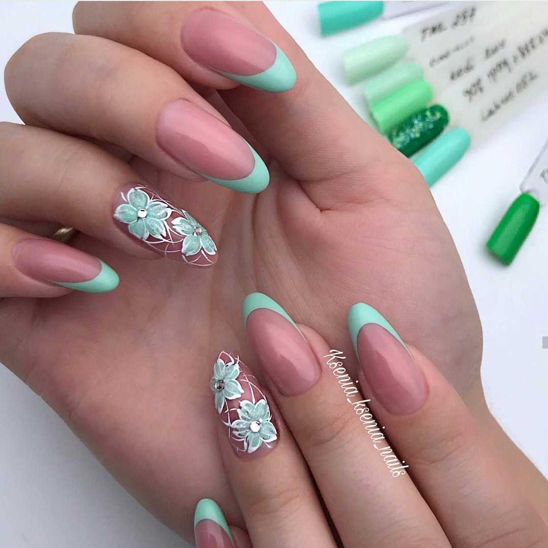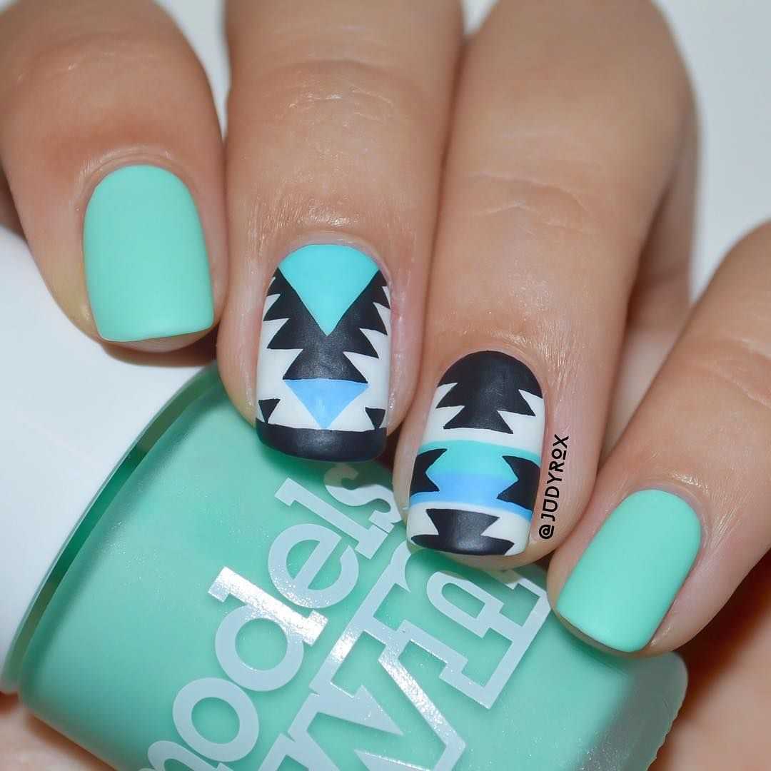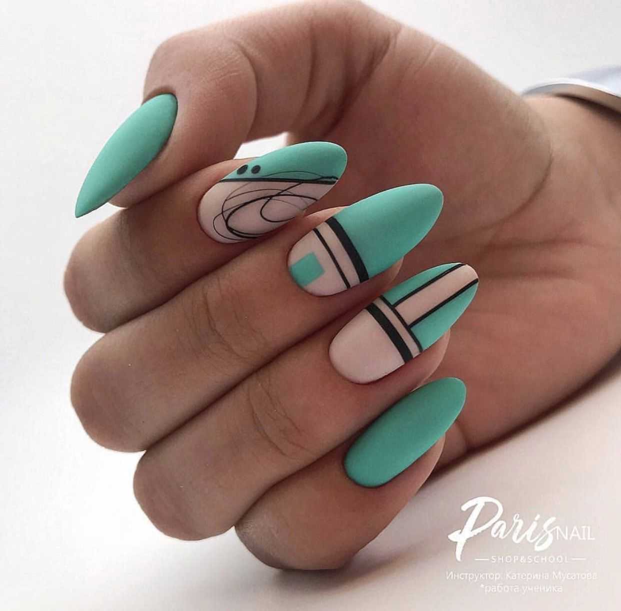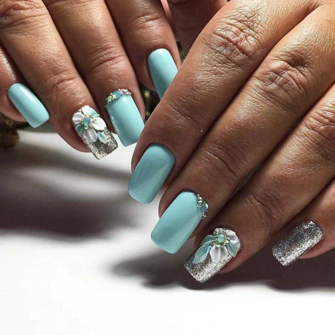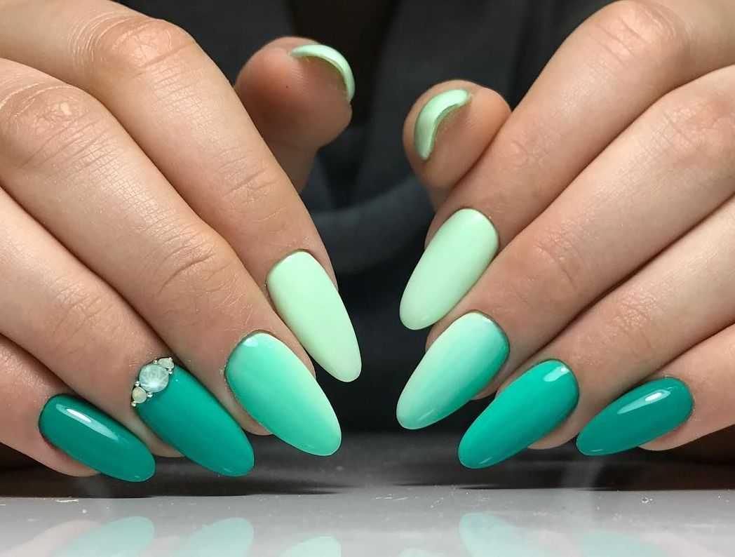 В маникюре может быть использован не только бирюзовый цвет, но и различные его оттенки в комбинации с другими цветами.