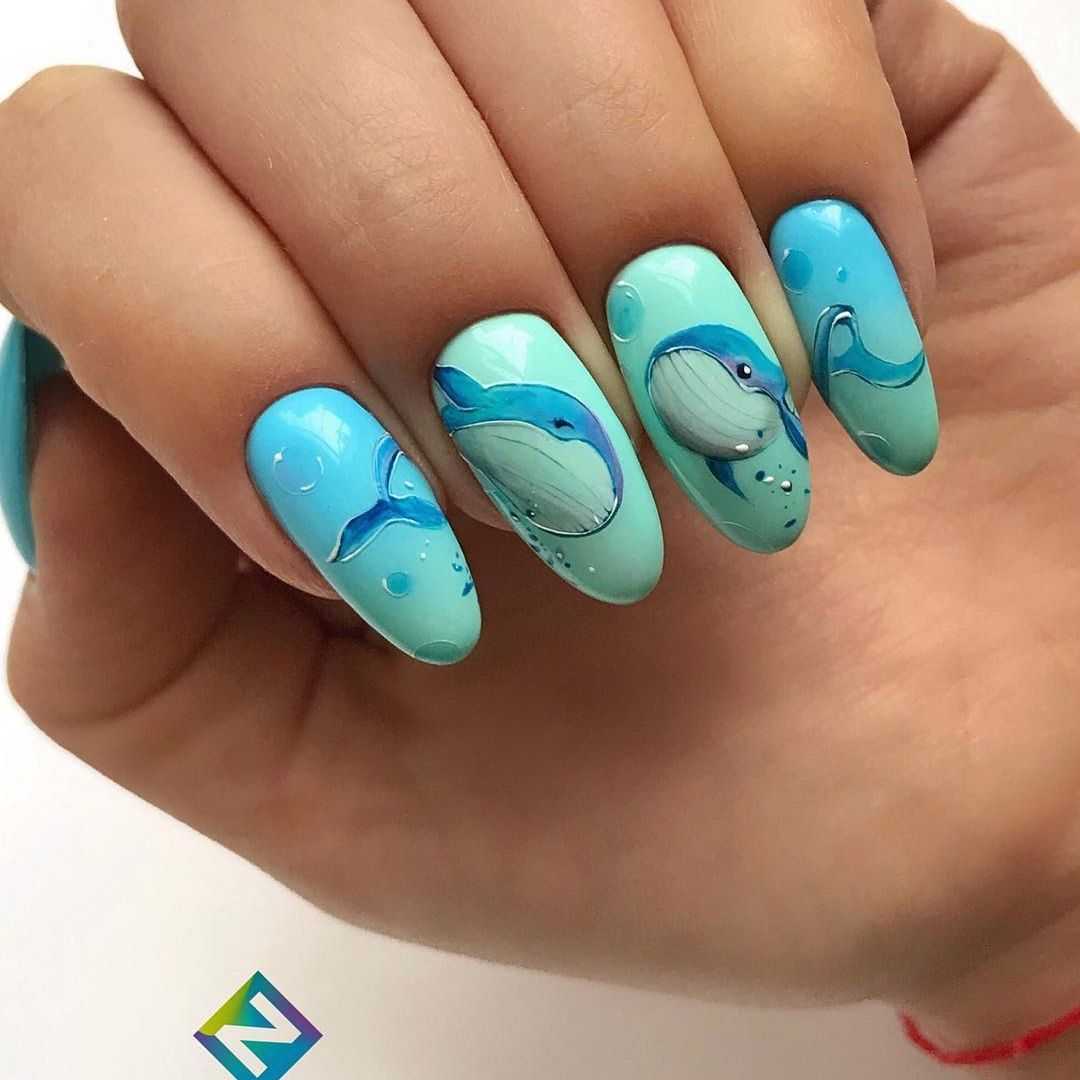 Необычным решением станет создание эффекта омбре на ногтях. Для этого могут быть использованы разные оттенки бирюзы, серебро, белый цвет или что-то из тёмно-синей палитры.