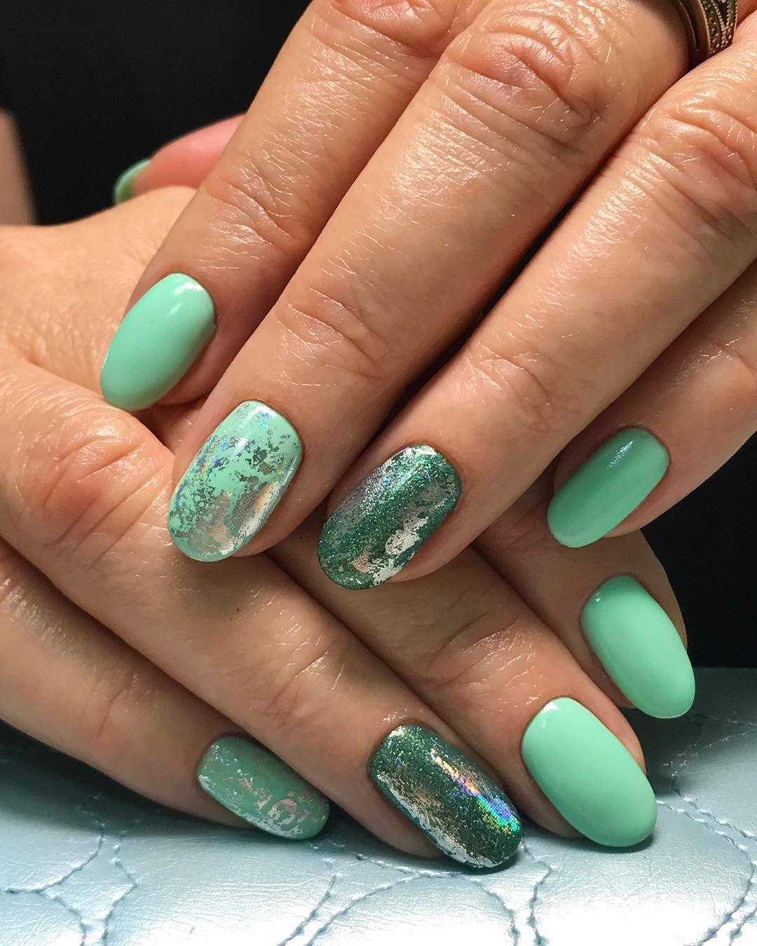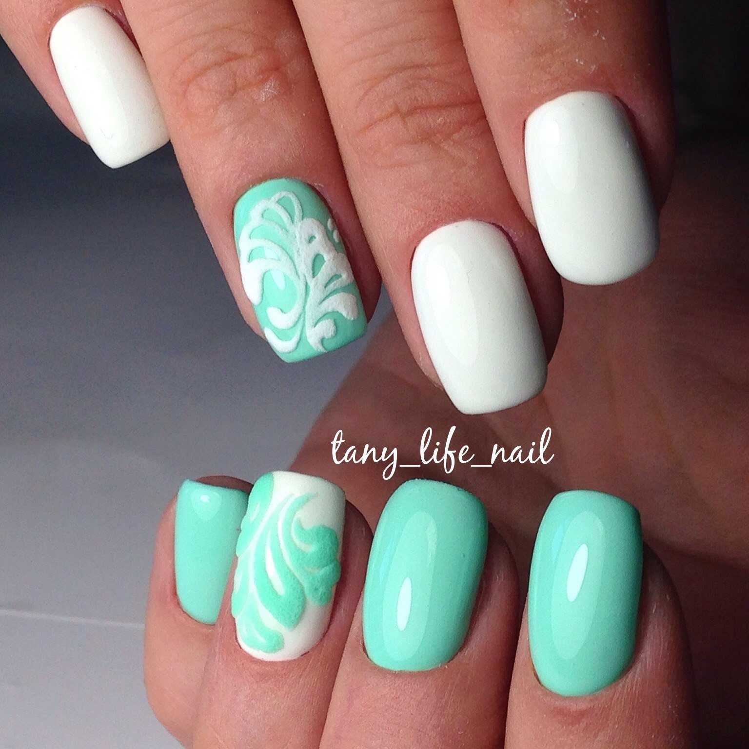 Удивительно, но белый освежает и без того свежий мятный маникюр. Добавьте к этой паре серебряный гель-лак, он обязательно смягчит яркость и придаст вашему маникюру утонченный шарм.