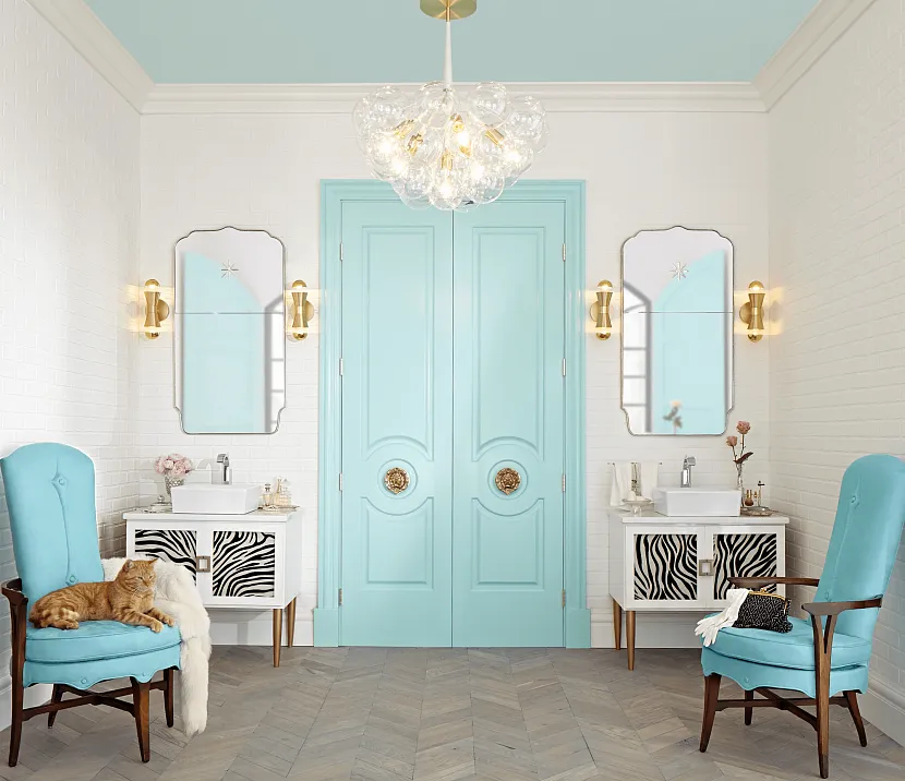 Организация интерьера спальни в стиле тиффани с отделкой стен бирюзовой краскойИсточник Pinterest