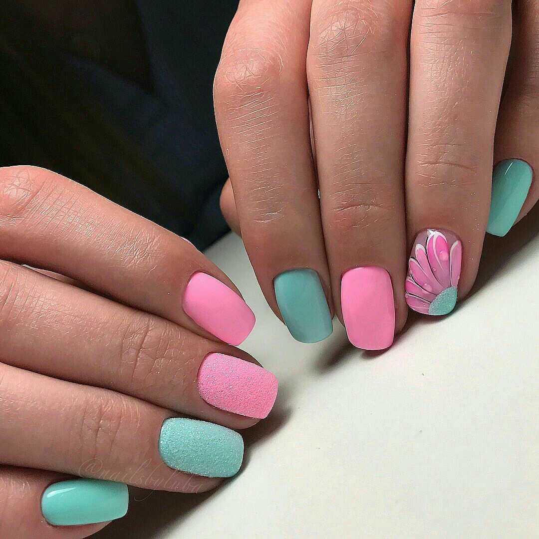 Вы когда-нибудь пробовали мороженое со вкусом клубники и мяты? Маникюр в этих цветах вызывает такой же вкус и свежесть, как и мороженое. Такой маникюр поднимет настроение вам и окружающим весной и в летнее время года. А также дополнит ваш модный лук. Нанесите цвета на разные ногти, либо выполните градиент.