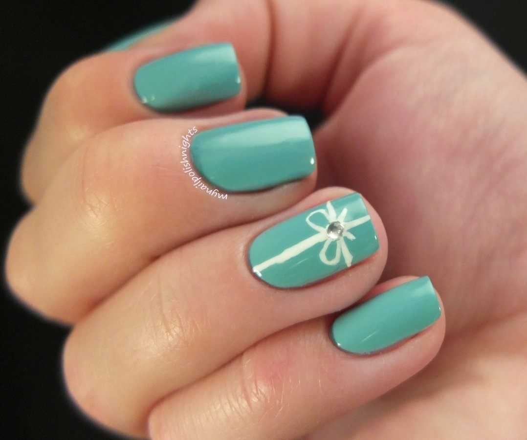 - Дополнительные идеи для оформления дизайна ногтей «Тиффани»: