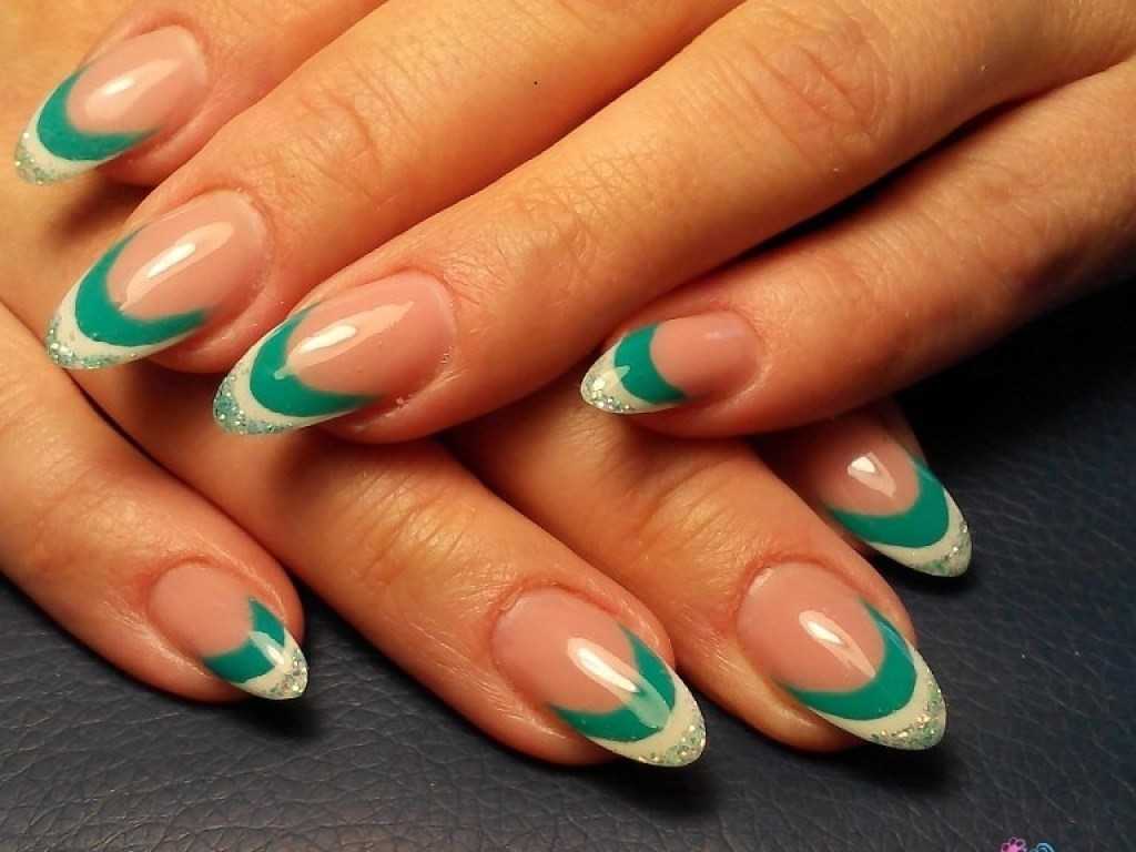 Зеленый цвет в маникюре придает женским ручкам строгость и шарм. Палитра зеленого состоит из множества тонов. Благодаря этому модницы могут с легкостью выбрать себе лучшие и притягательные оттенки. Для идеального маникюра главное ровность линии улыбки и аккуратность. Для такого маникюра подойдет любая форма ногтя и любая длина. При этом особенно красиво и аккуратно смотрится зеленый френч на длинных овальных ноготках. При этом декором не стоит увлекаться и носить такой маникюр с зеленым макияжем. Зеленый цвет не является универсальным под любое событие, нужно учитывать и то, что при выборе декора, весь образ должен быть гармоничным.