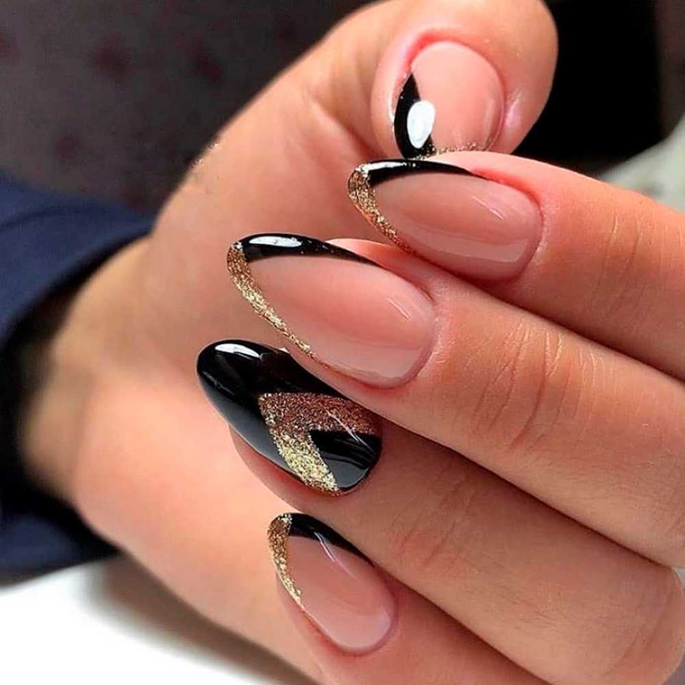 «Взрыв настроения». В этом оформлении главную роль отводят кончику ногтевой пластины. В отличие от классического «полумесяца» стилистикой предусмотрено использование нестандартных форм. Дизайн хорошо подходит девушкам, которые хотят наполнить свой образ благородством. Линию «улыбки» можно делать зигзагообразной, волнистой или скошенной. Линию перехода между «полумесяцем» и фоном желательно рисовать без четких границ, в итоге получится плавный переход от одного к другому оттенку.