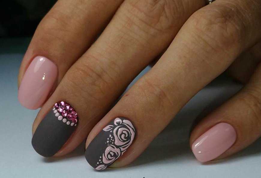 Серо-розовый маникюр: варианты дизайна