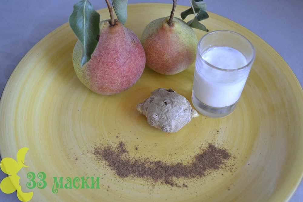 Очистить от кожицы и семян, а затем размять в кашицу грушу, отжать сок, а мякоть смешать с сухим молоком до консистенции густой пасты и нанести на лицо. Продолжительность маски – 15-20 минут, а затем ее нужно смыть теплой водой и нанести на кожу крем.