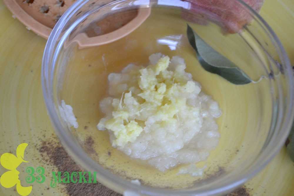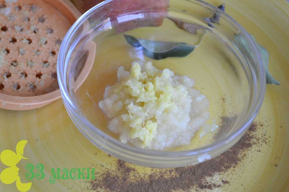 Имбирь также очистить от кожицы и измельчить на той же терке.