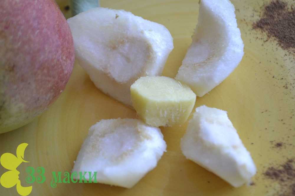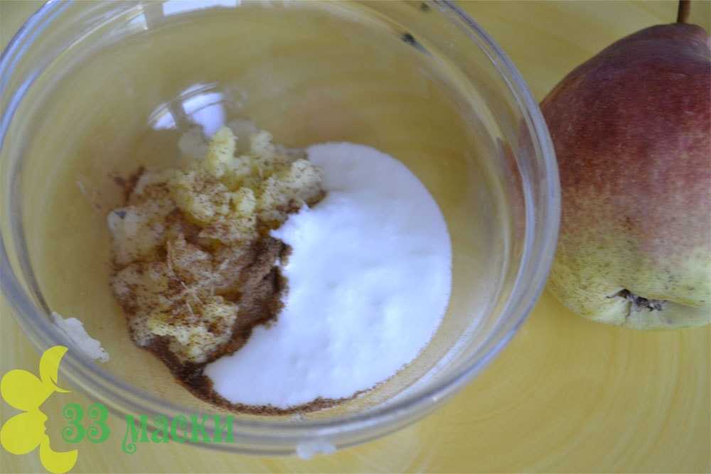 Натрите на крупной терке половинку груши. Далее смешайте столовую ложку фруктовой мякоти и две чайных ложечки лимонного сока. Наносите маску на десять минут, смывайте водой комнатной температуры. В конце обязательно воспользуйтесь увлажняющим кремом.