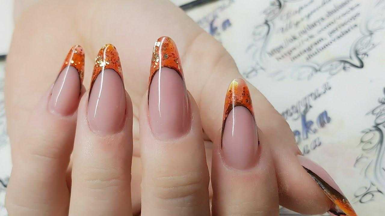 оранжево-фиолетовый маникюр