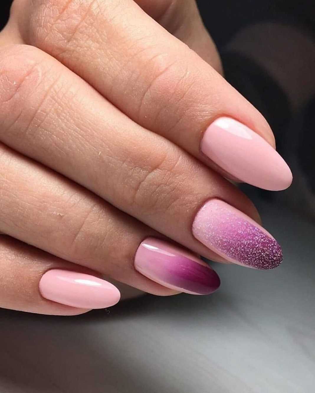 Градиентный маникюр на миндальные ногти