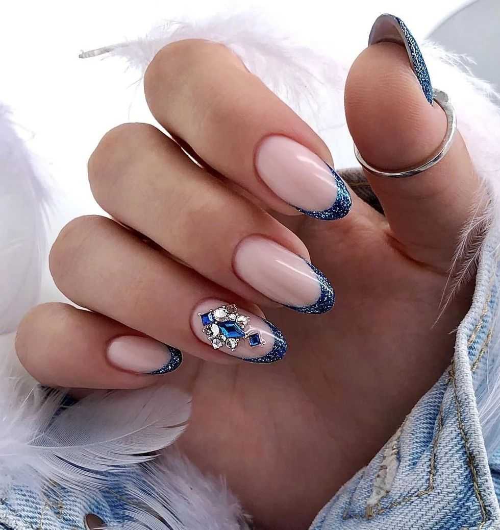 Ярко синие кончики сделают ваш французский маникюр мега модным в 2022 году, он шикарен как на коротких ногтях, так и на длинных.