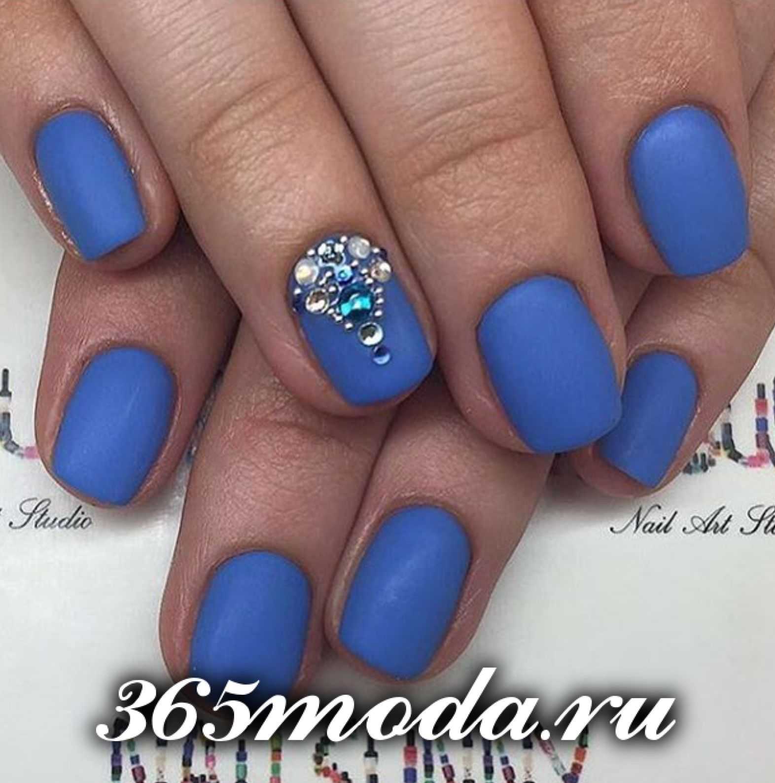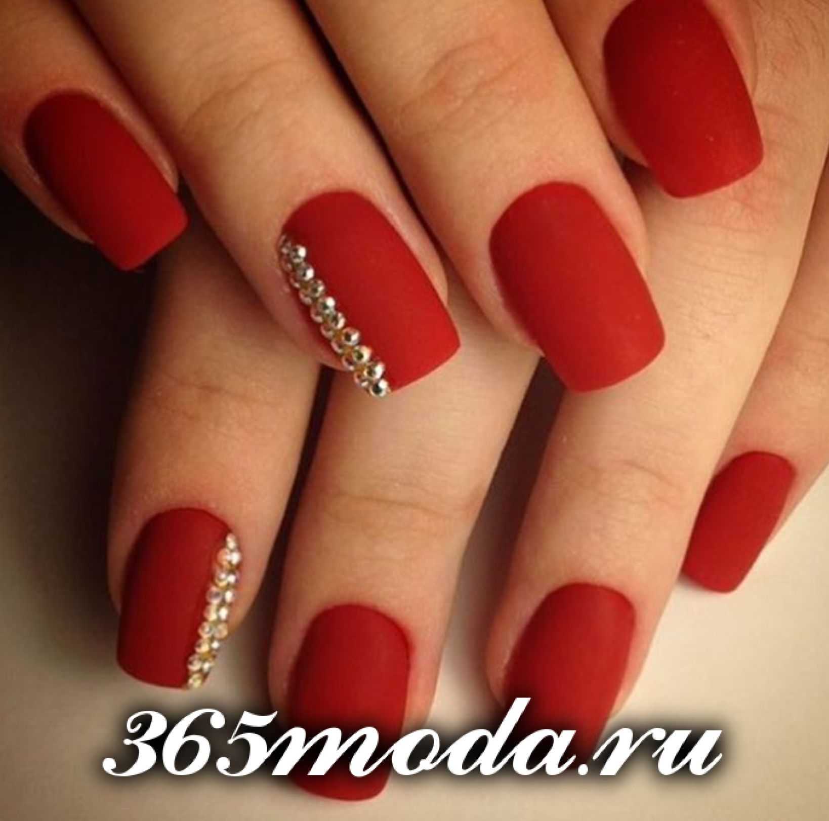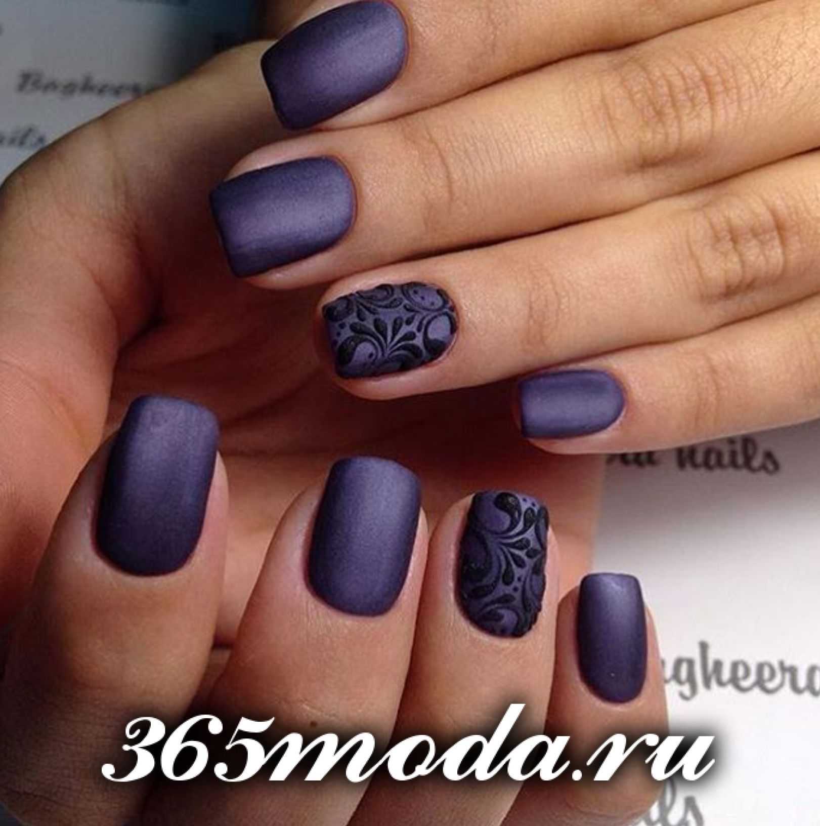 Для осенне-зимнего периода одним из наиболее актуальных маникюров, является матовый. Он делается либо с помощью специального матирующего финишного покрытия, либо матирующего лака. Лучше всего такое покрытие смотрится с такими цветами: красный, бордо, сливовый, шоколадный, синий, дымчато-серый, бежевый и т.д.