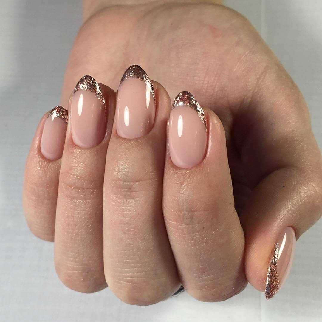 Так называют френч, который оформлен блестками любого цвета, на месте привычной белой полоски. Блестящий дизайн смотрится модно, ярко и празднично.