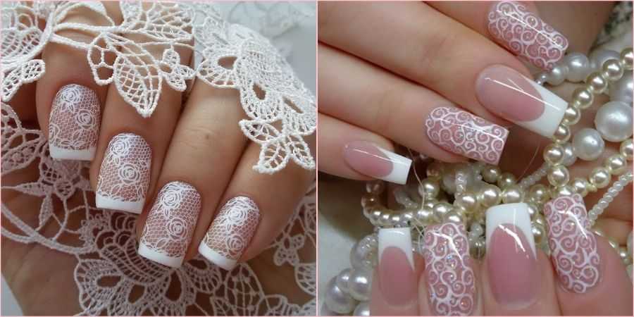 Кружевной эффект еще недавно делали исключительно для праздничного дизайна на большую длину. Особенно это было актуально для невест. Сегодня же, кружево отлично используют для создания нежного дизайна на короткие ногти светлых тонов. При этом именно такой вариант может подходить для торжества и повседневной носки.