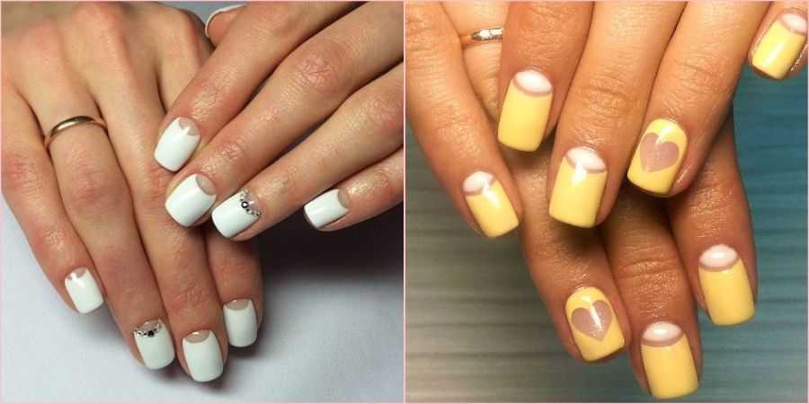 Для новобрачных, которые полностью отвергают классику французского дизайна ногтей, придумали френч наоборот. Тут полосочку рисуют в районе лунки, а остальную часть ноготка покрывают шеллаком любого цвета, который может быть как белым, так и более ярким.