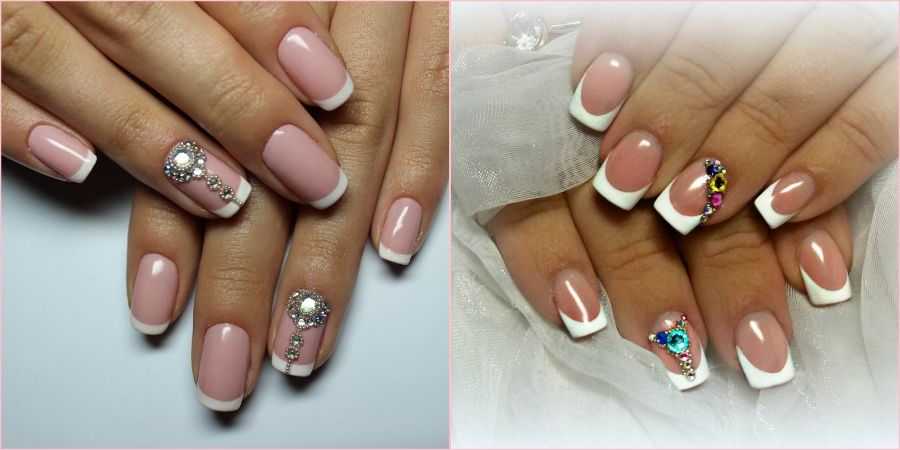 Отличной идеей станет дополнить маникюр сверкающими камнями, ведь большинство девушек обожают украшение на ногтях в виде страз, а в сочетании с френчем это просто идеальный вариант для многих.