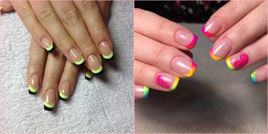 Летний френч — это яркие цвета и оттенки, привлекающие больше внимания к ногтям.