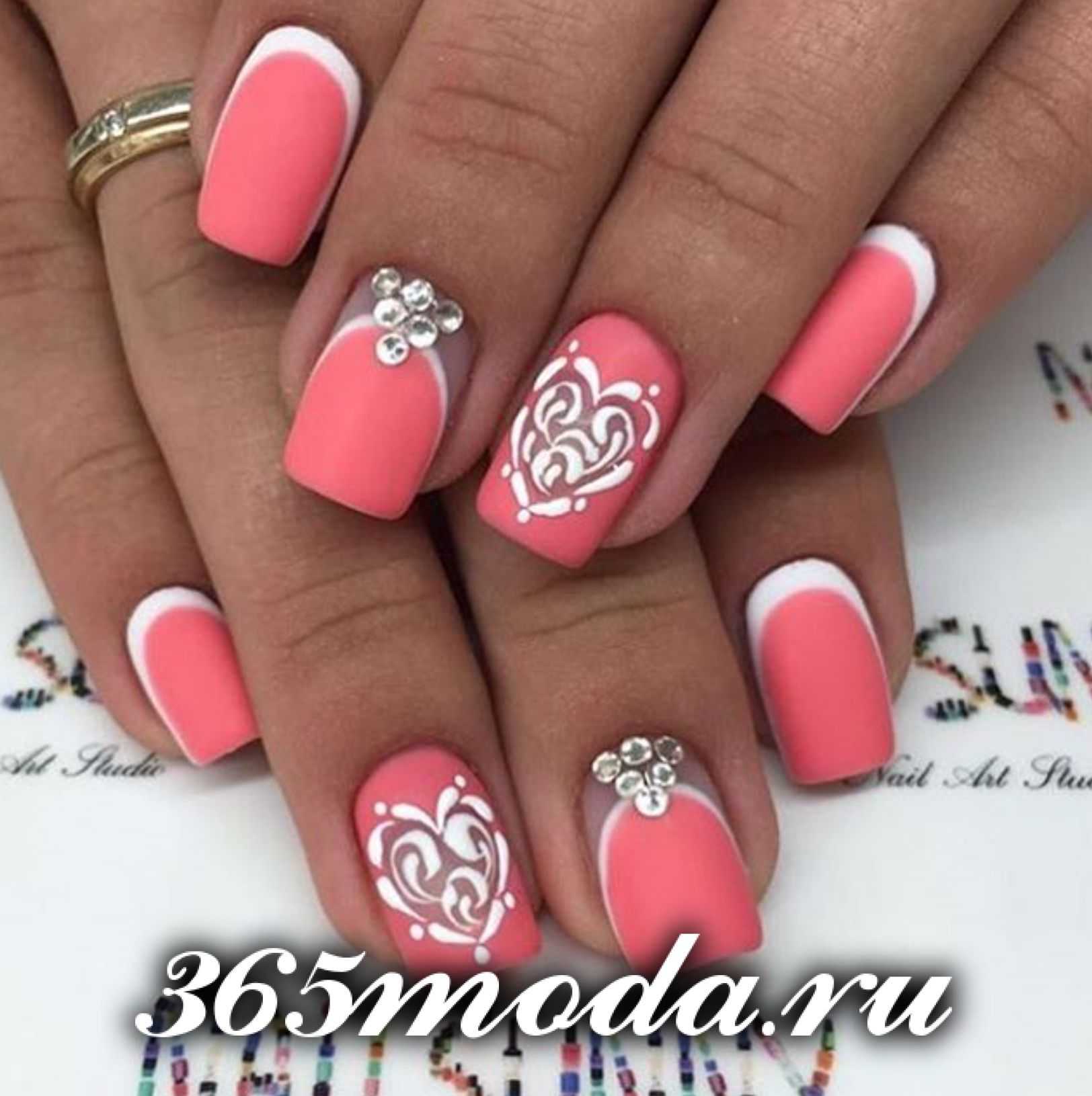 Кристаллами можно украсить несколько ногтей, только безымянные или же выложить какую-то фигуру из них, например, сердце или ромбик. Уместно будут смотреться жемчужные камушки под аксессуары невесты в виде ожерелья из жемчуга.