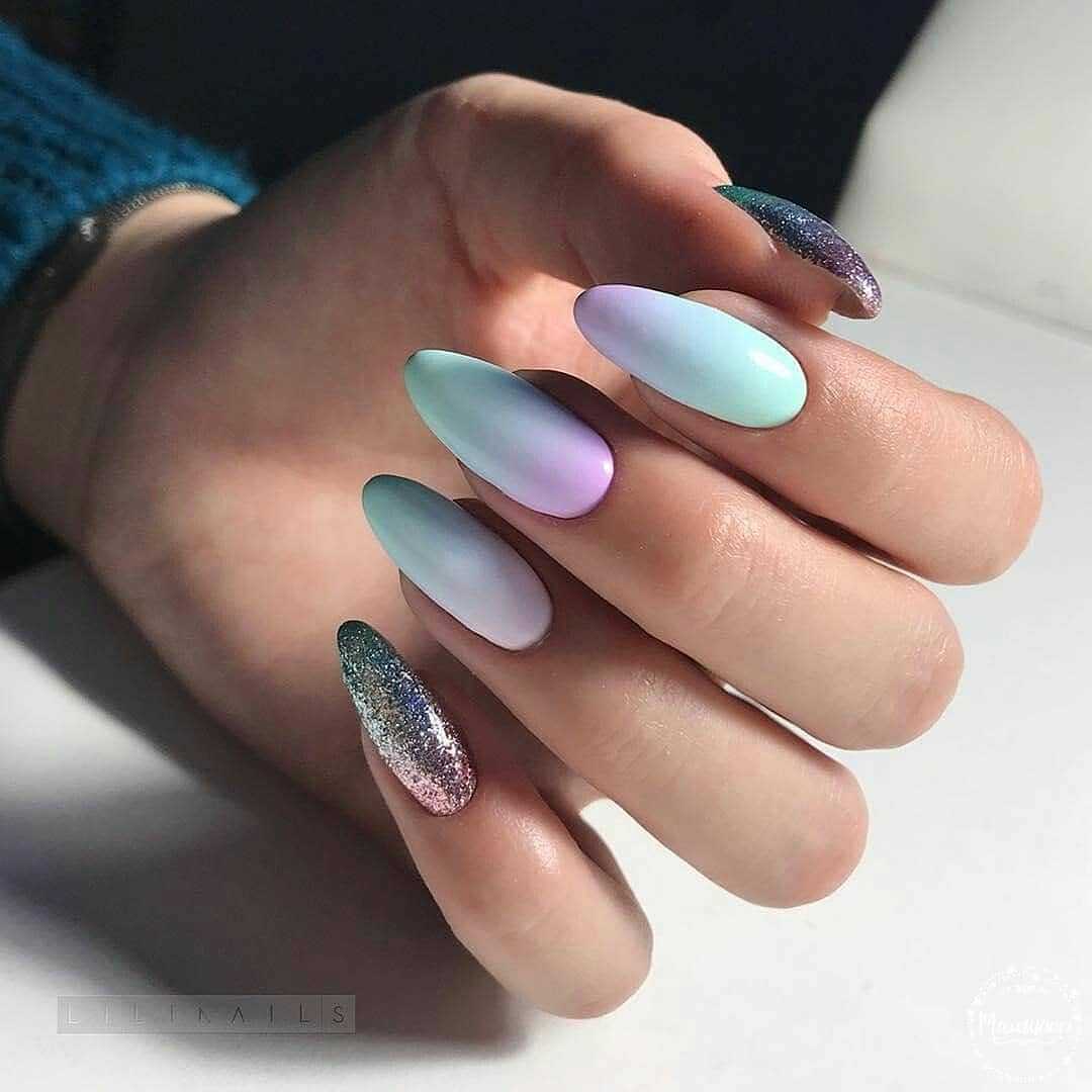 Градиент в моде как в нейл-арте, так и, например, в индустрии причесок. Хотя здесь, учитывая огромное количество цветов лака, точно есть где разгуляться.
