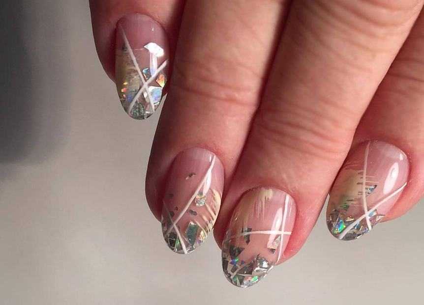 — снимаем липкий слой и дизайн ногтей с фольгой готов.