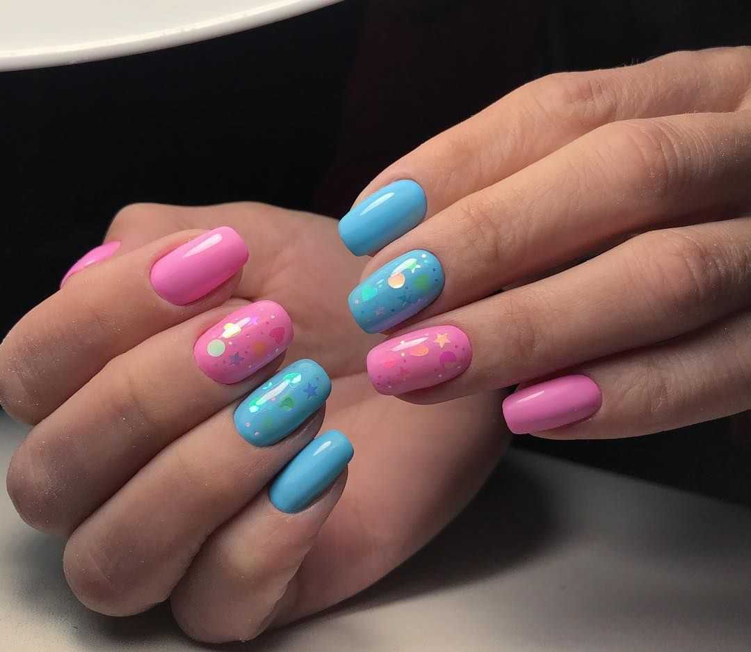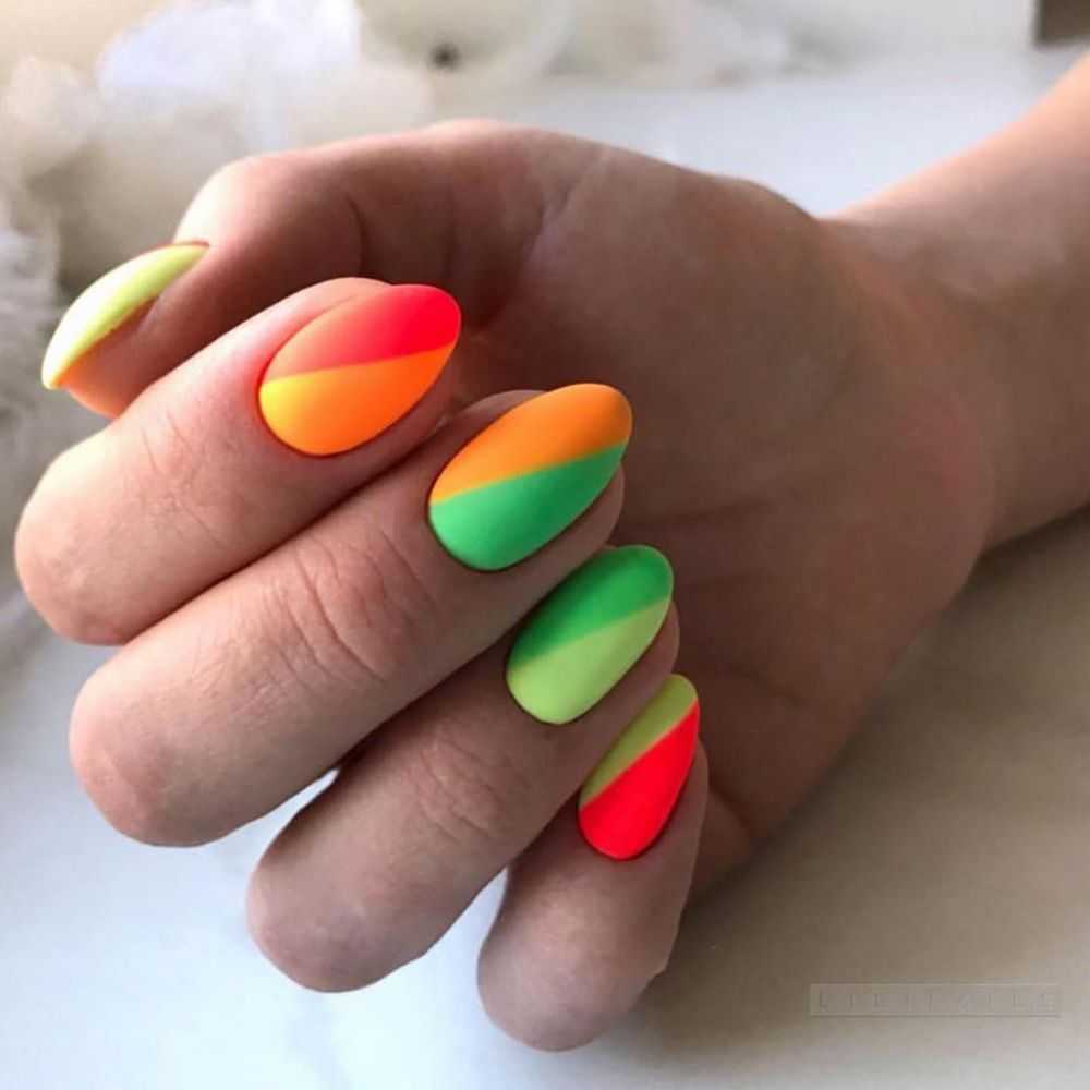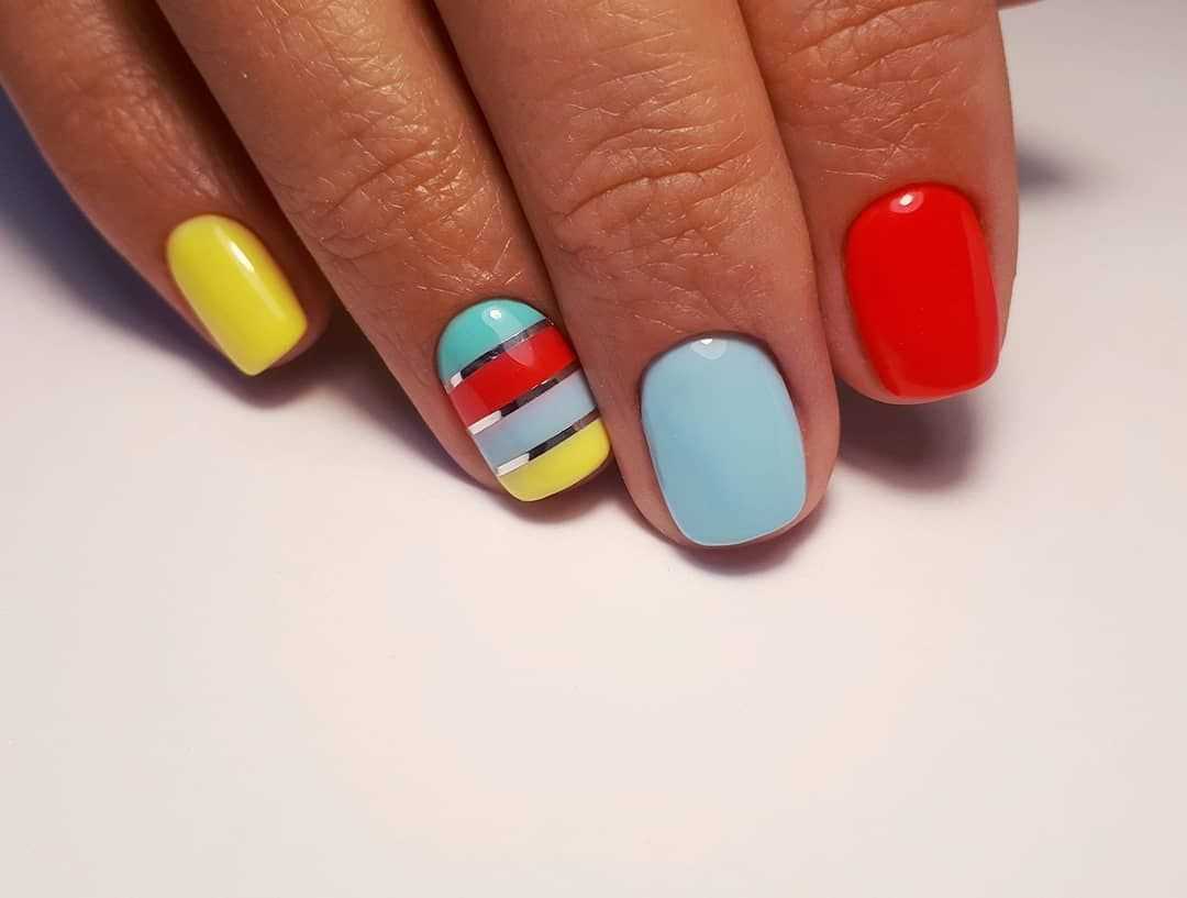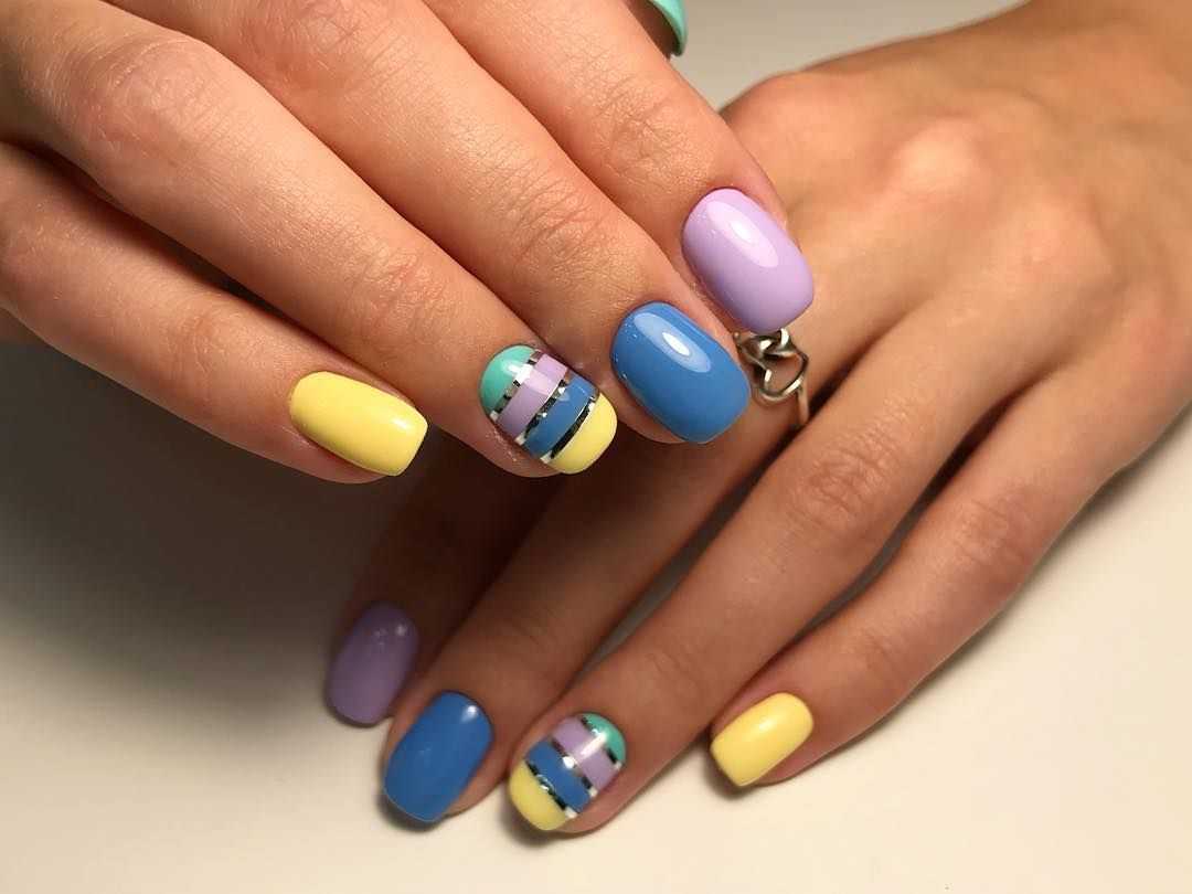 Многоцветный маникюр стал очень популярным благодаря своей универсальности. Любая модница может легко подобрать аксессуары и одежду к таким ногтям. Правильно выполненный такой маникюр легко впишется в самый строгий дресс-код или смело подчеркнет ваше веселое настроение в любую погоду. Выберите свои оттенки прямо сейчас!