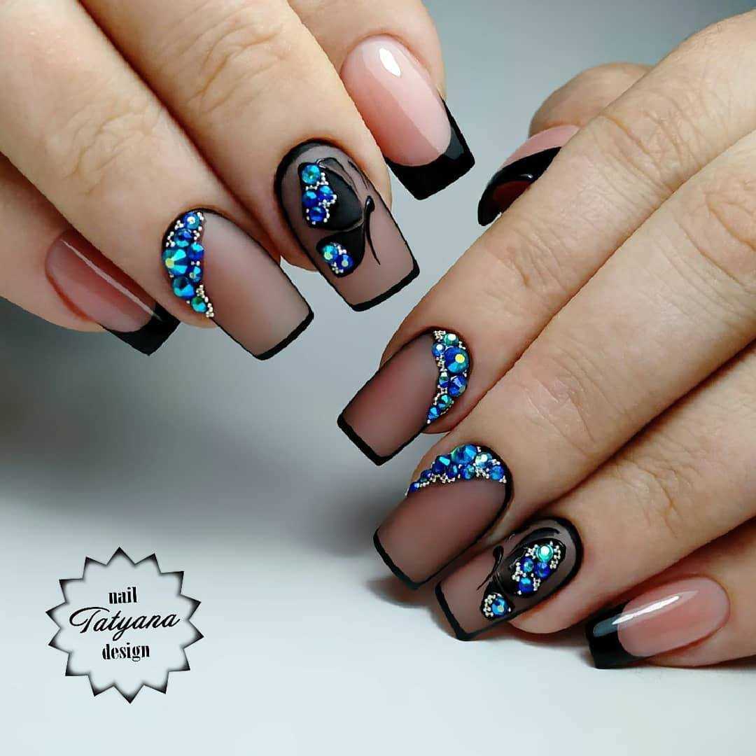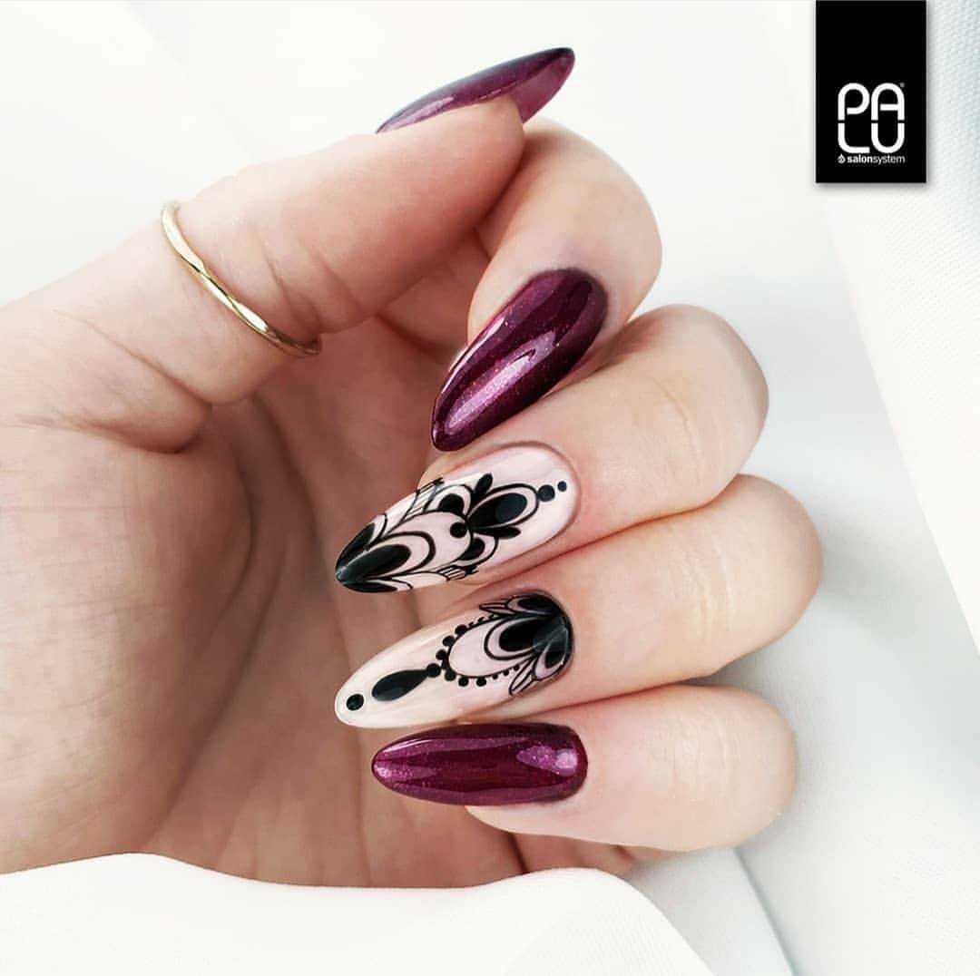 Маникюр с черным дизайном может иметь самую разную форму: от естественной прямоугольной или овальной, до ультрамодных пик. Для каждой формы необходимо подобрать гармоничный дизайн и цветовые сочетания.