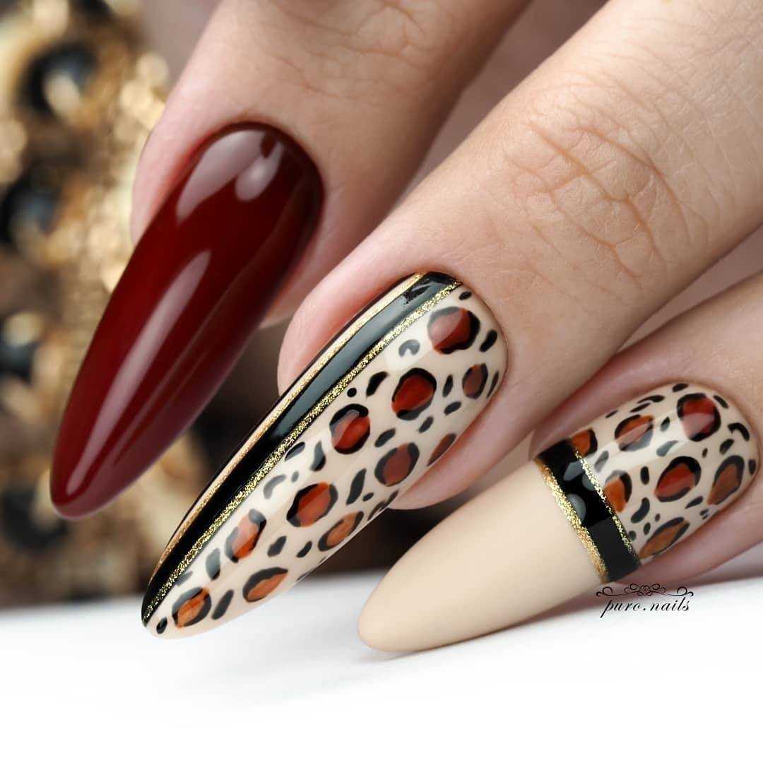 Сочетание нескольких цветов в маникюре — причем сочетание цветов не обязательно должно быть в одной цветовой гамме, также можно сыграть на контрасте. Например, сочетание пастельно-бежевого с черным, красного с золотым … Главное в этом дизайне ногтей — не переборщить.
