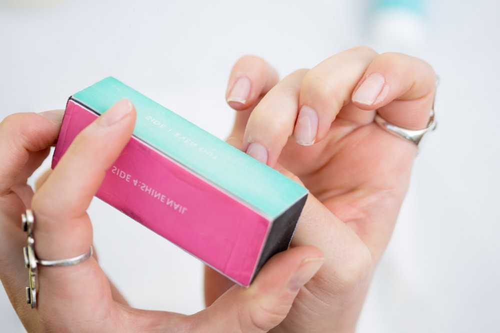 - Обработать ногти бафиком для создания шероховатой, сцепляющей поверхности;