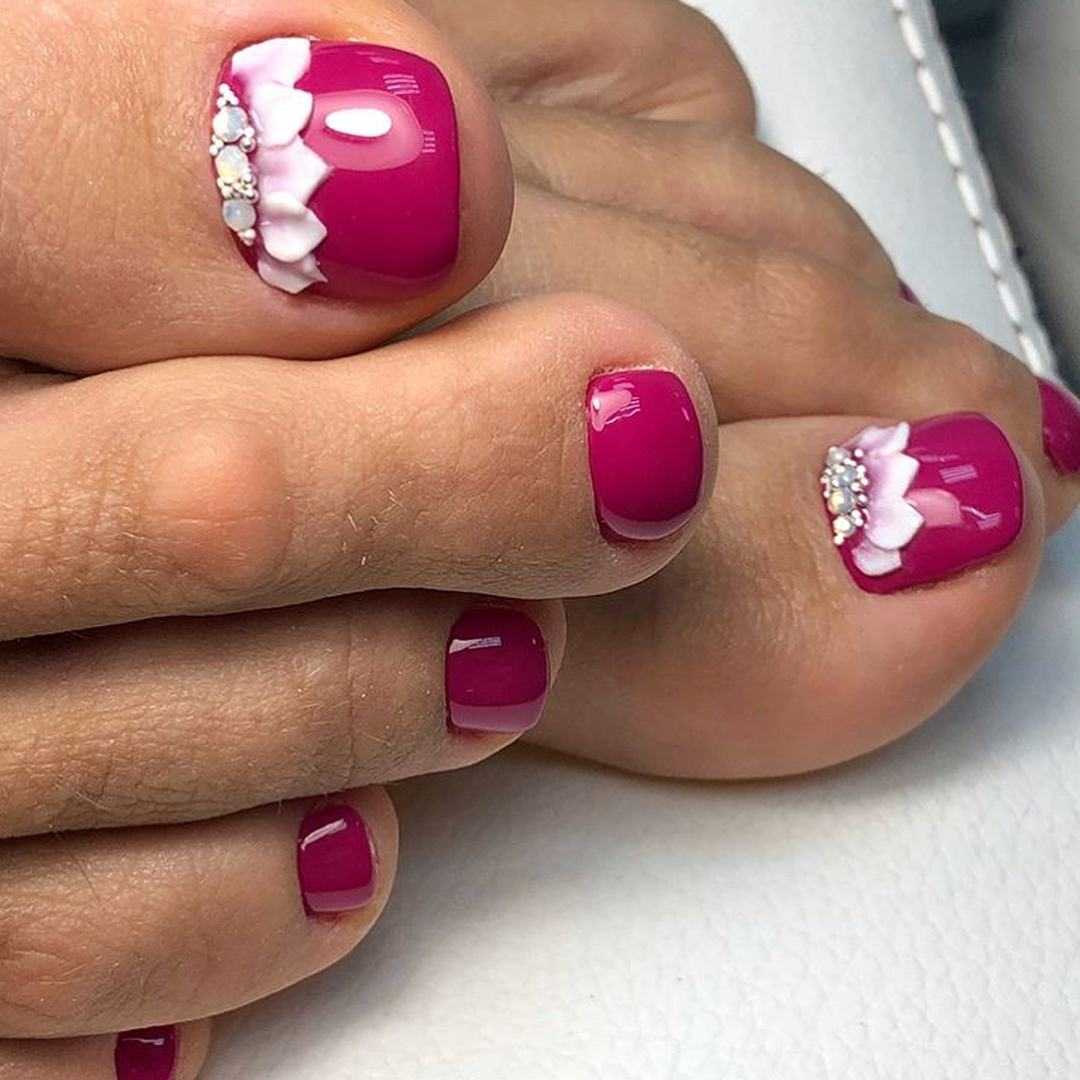 Педикюр малинового цвета уже давно радует обладательниц прекрасного пола. Этот яркий, сочный и модный оттенок не оставит равнодушным ни одну девушку.