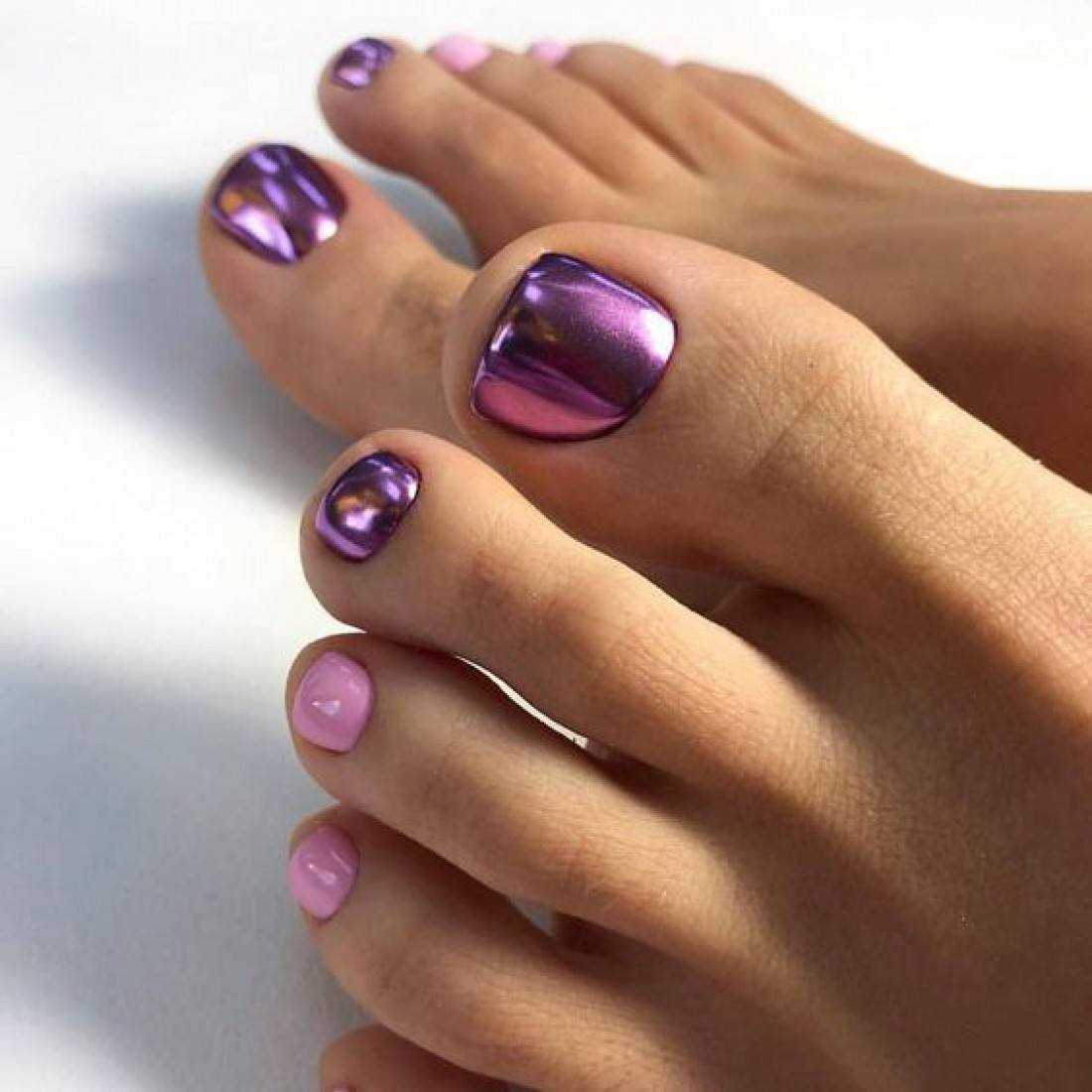 Голографический педикюр относится к зеркальному виду, где в качестве покрытия используется голографический порошок. Он позволяет создать на ноготках «бензиновые пятна», как иногда называют голографик.