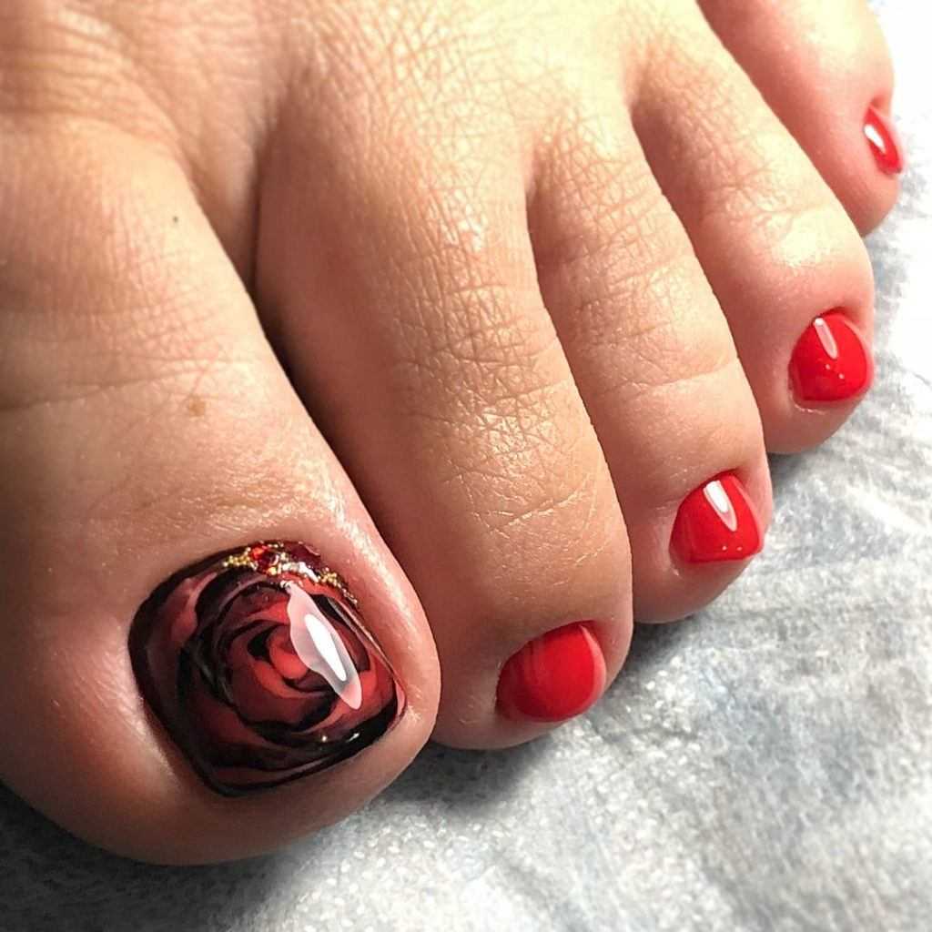 - рисунки – ногти на больших пальцах ног могут стать холстом для художника, в этом сезоне модными остаются рисунки в мультяшном стиле, надписи, примитивные силуэтные изображения, абстракция;