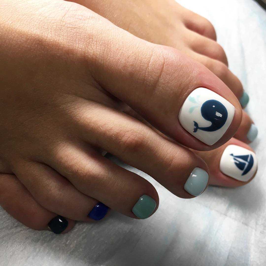 Синий педикюр 2019 можно выполнять с применением следующих оттенков: