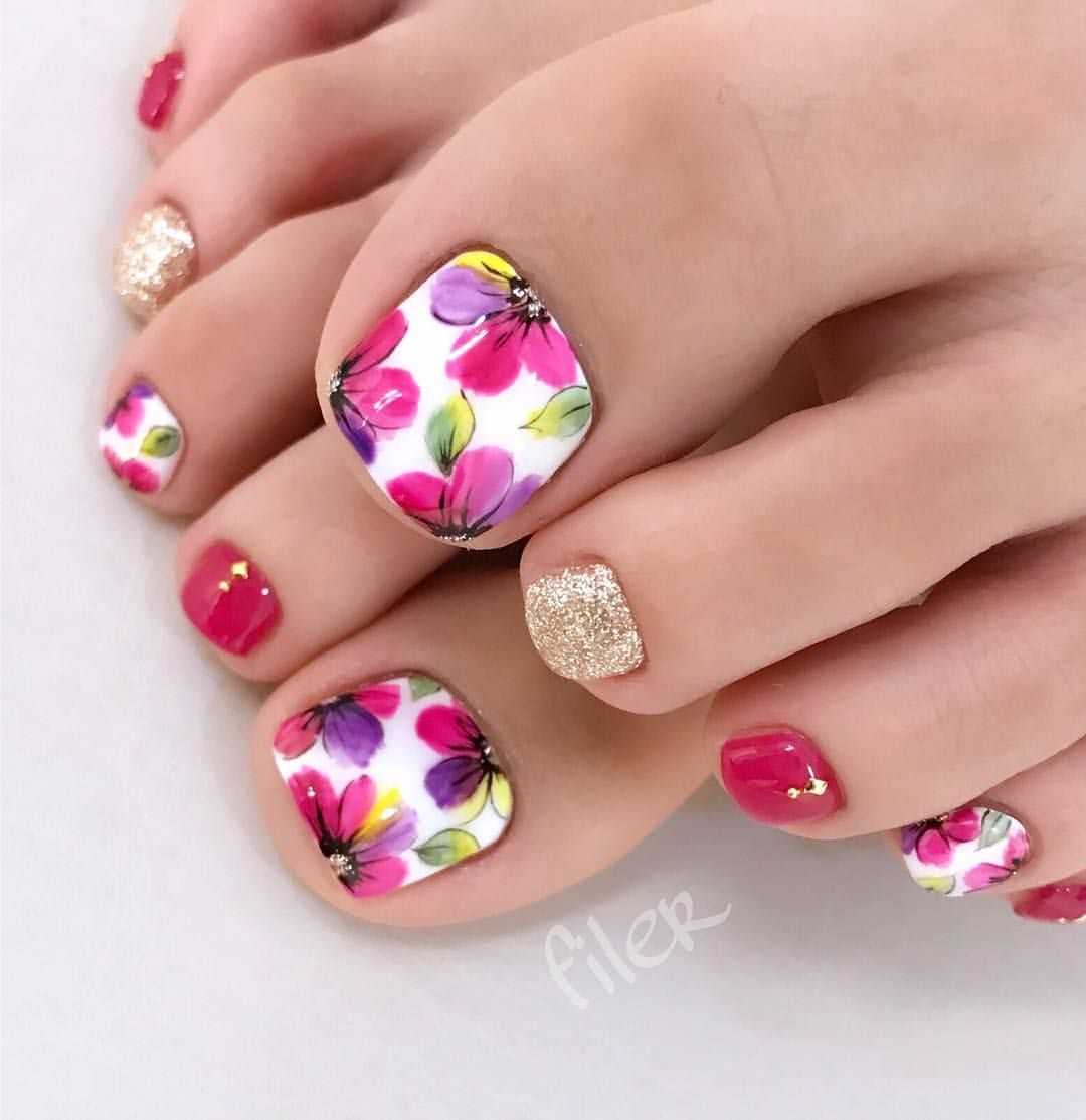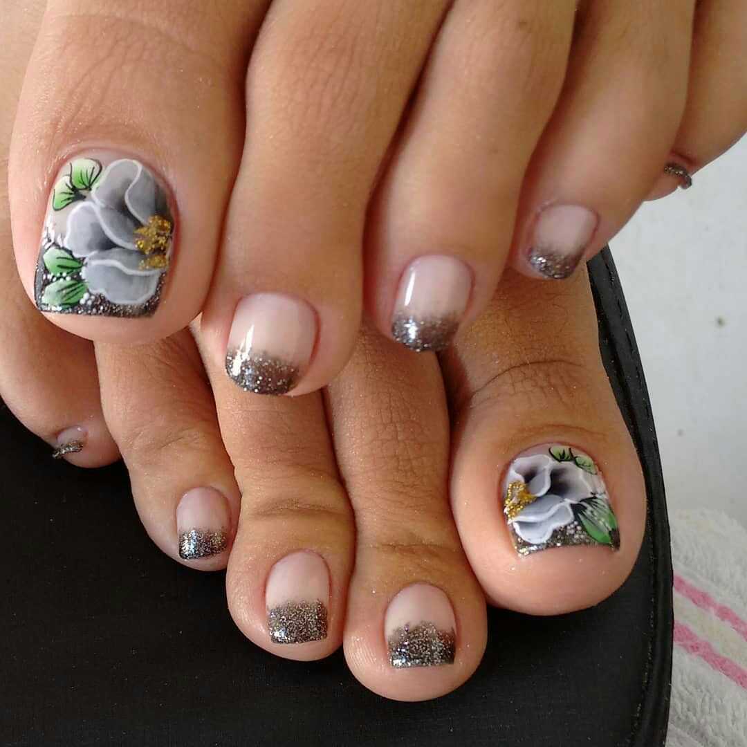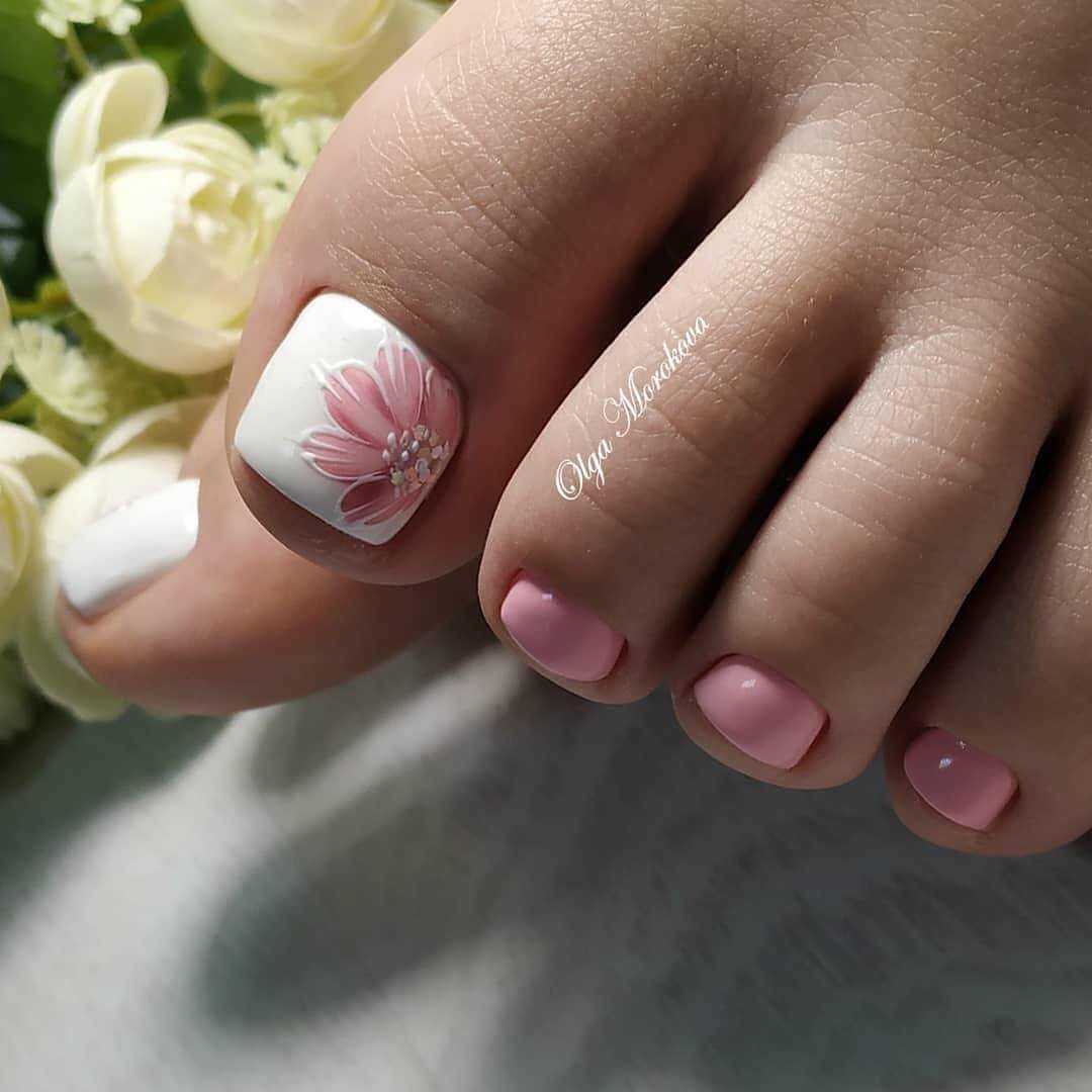 Цветочный орнамент — это нежный, женственный вариант, чтобы украсить свой педикюр. Этот дизайн больше подходит молодым девушкам. Подобное оформление смотрится интересно как на руках, так и ногах. Поэтому можно создать интересное сочетание рисунка в одном стиле.