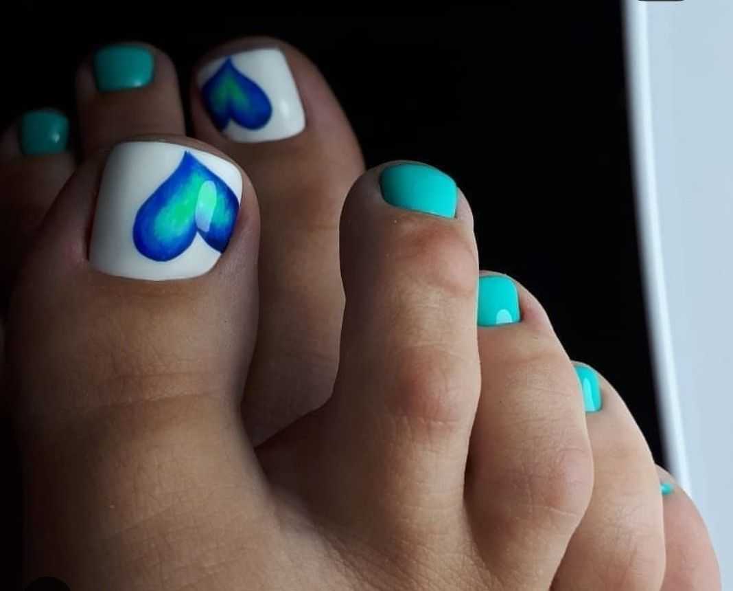 Минусом педикюра в синих цветах можно назвать подчеркивание всех недостатков, поэтому перед педикюром ногти необходимо привести в идеальный порядок.