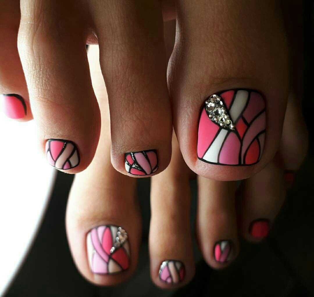 Красивый педикюр: дизайн с абстракцией и геометрией