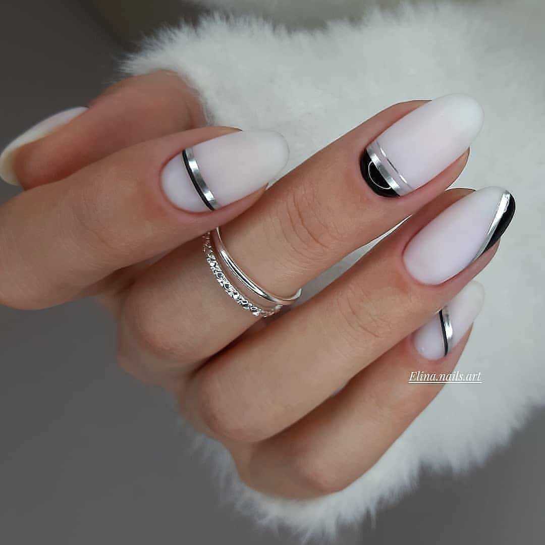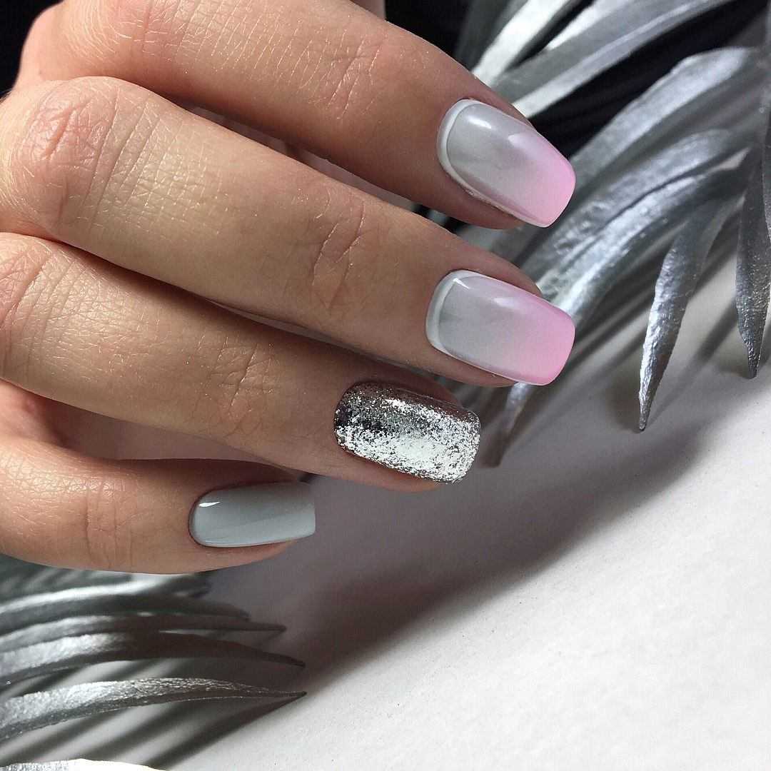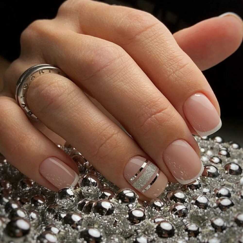 Серебристый цвет на ногтях в последнее время очень модный вариант. Металлическое покрытие делает дизайн одновременно нарядным, но при этом не умиляет его строгости.