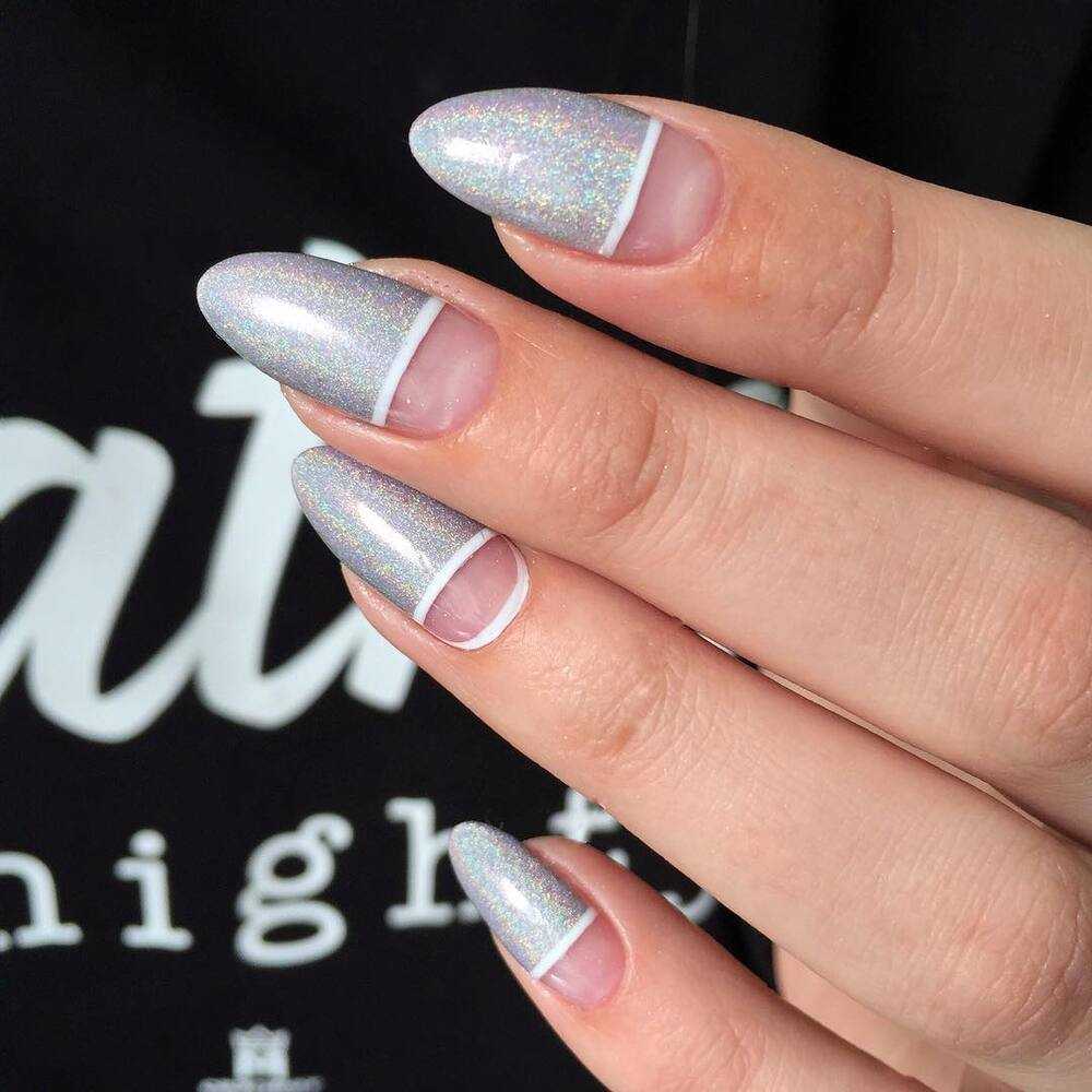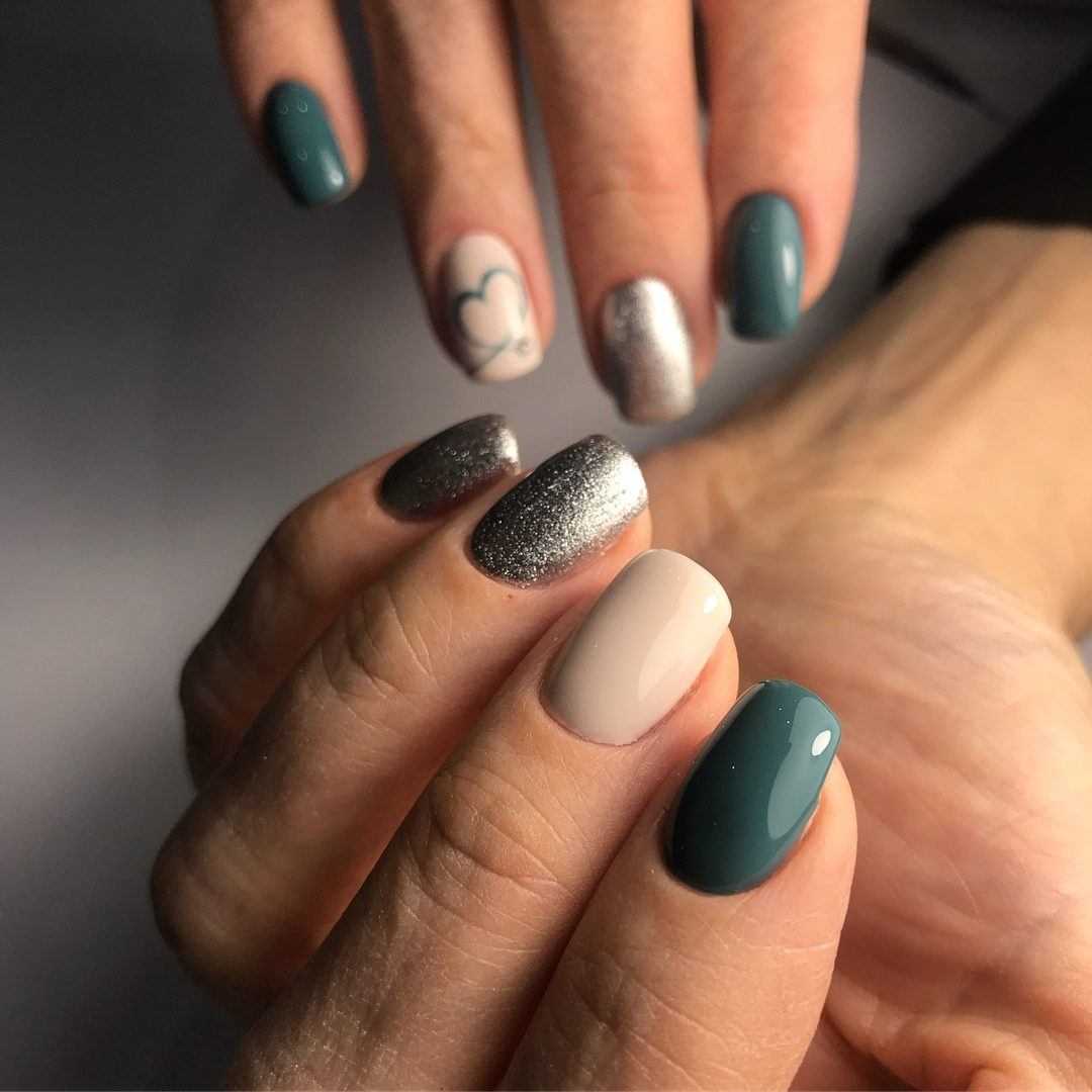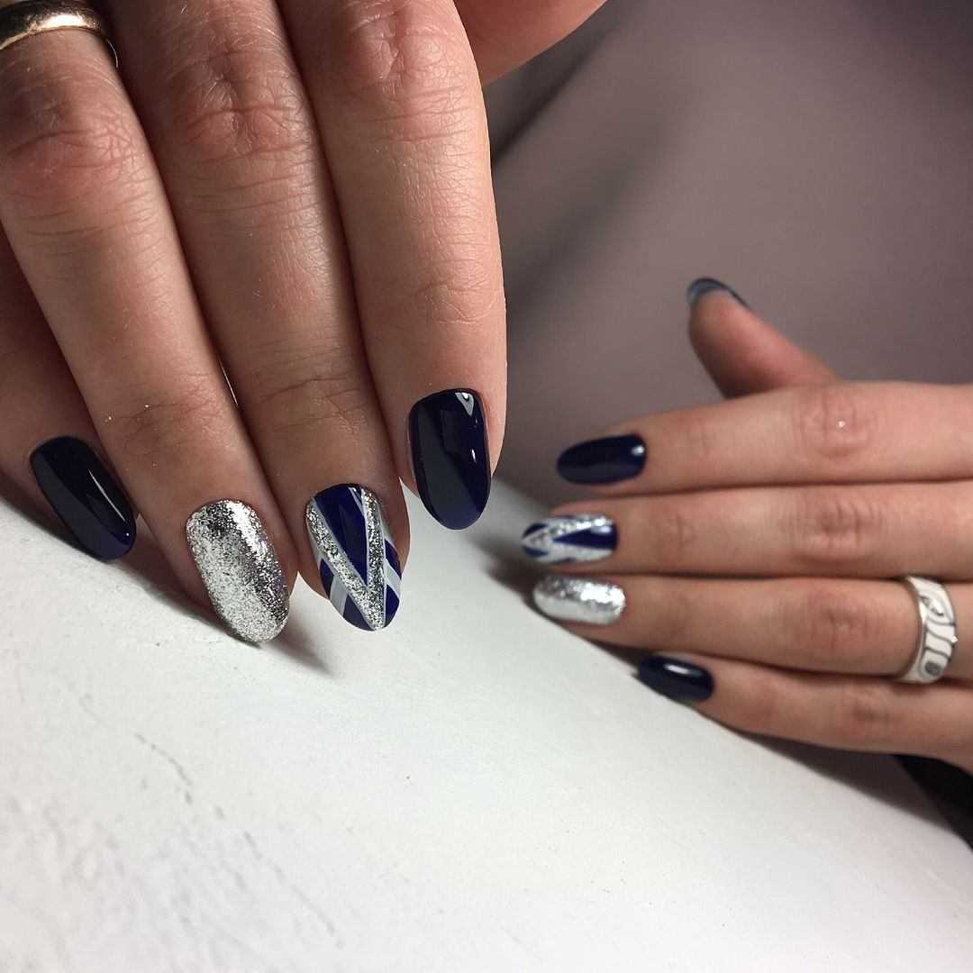 Серебристый цвет на ногтях в последнее время очень модный вариант. Металлическое покрытие делает дизайн одновременно нарядным, но при этом не умиляет его строгости.