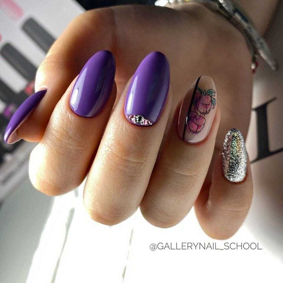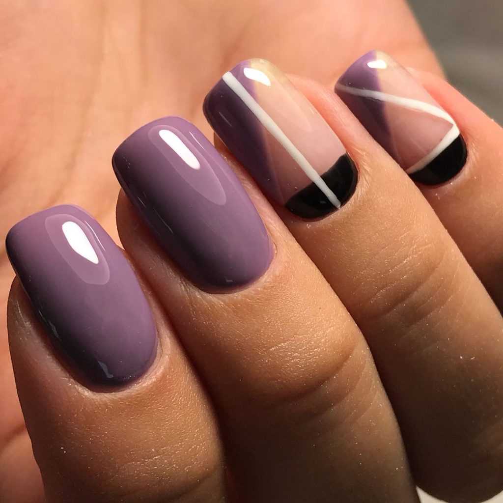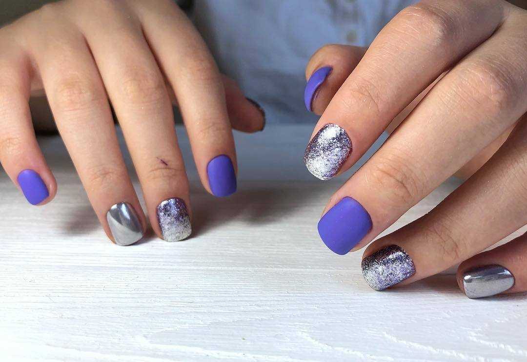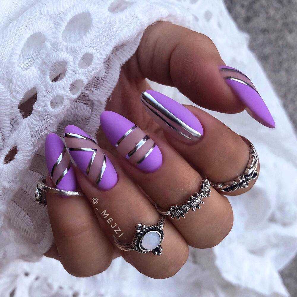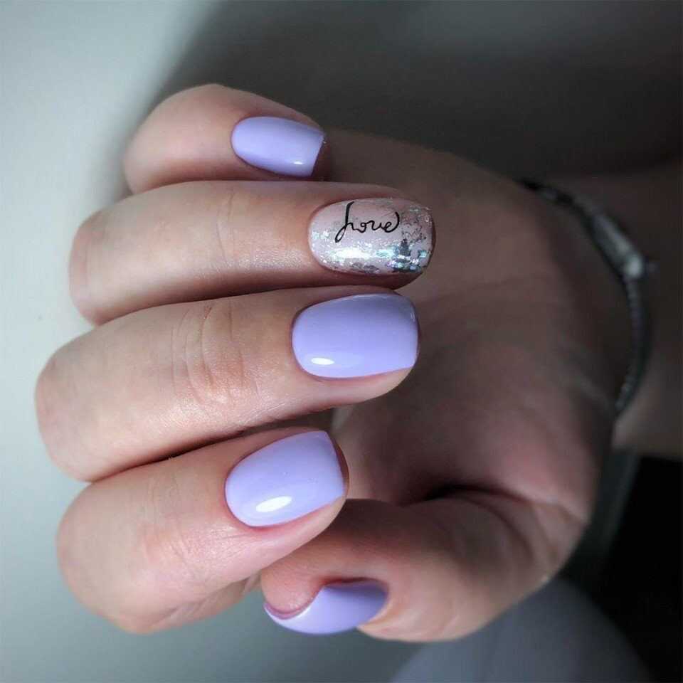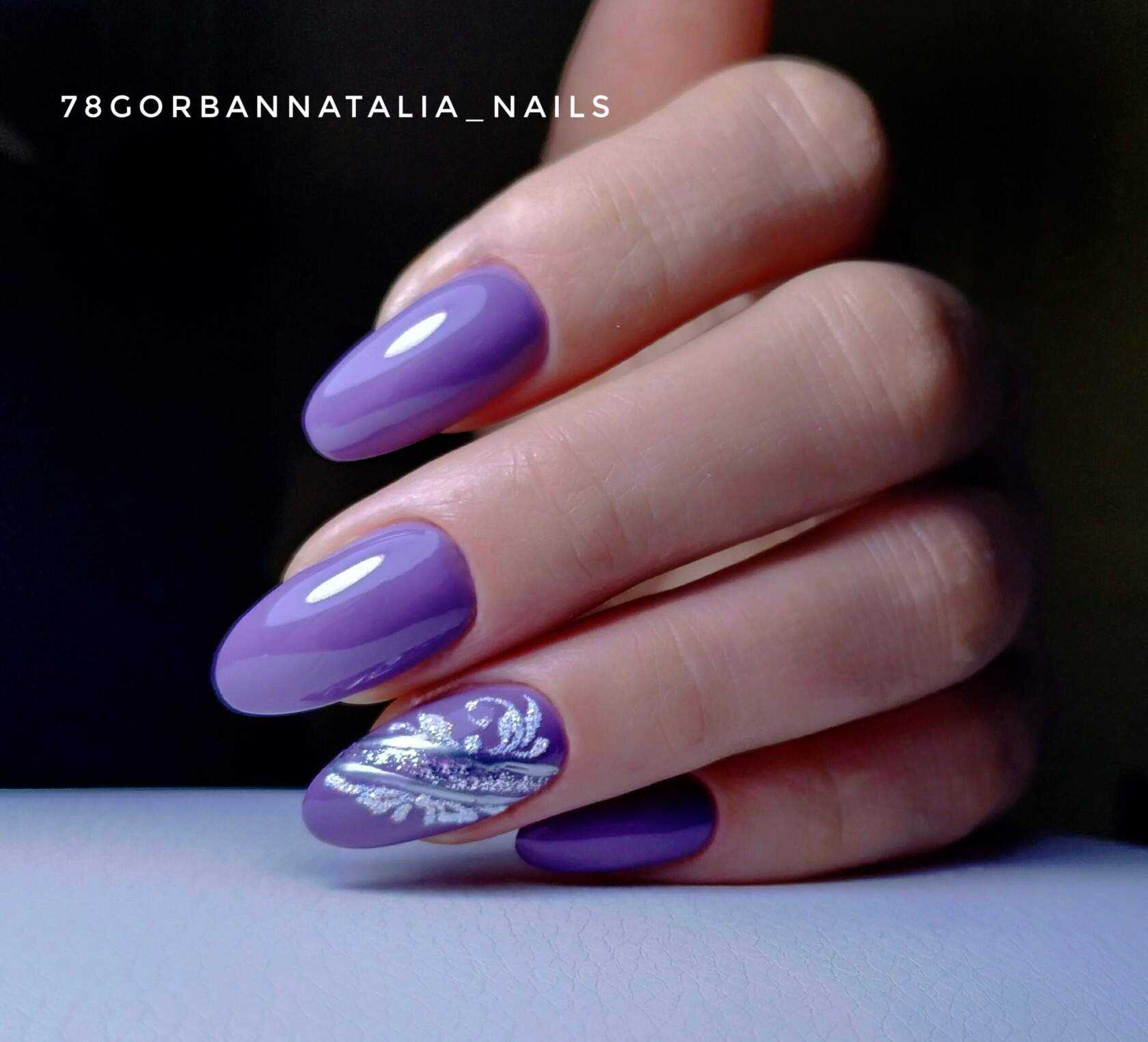 Сиреневый в своем исполнении на короткую длину схож с розовыми тонами. Задача та же, выполнение с различными дизайнами то же, но отличие лишь в том, что это будет не надоедливый розовый, а редкий сиреневый оттенок.