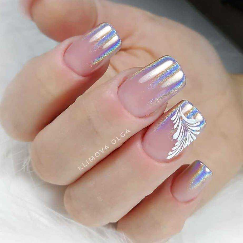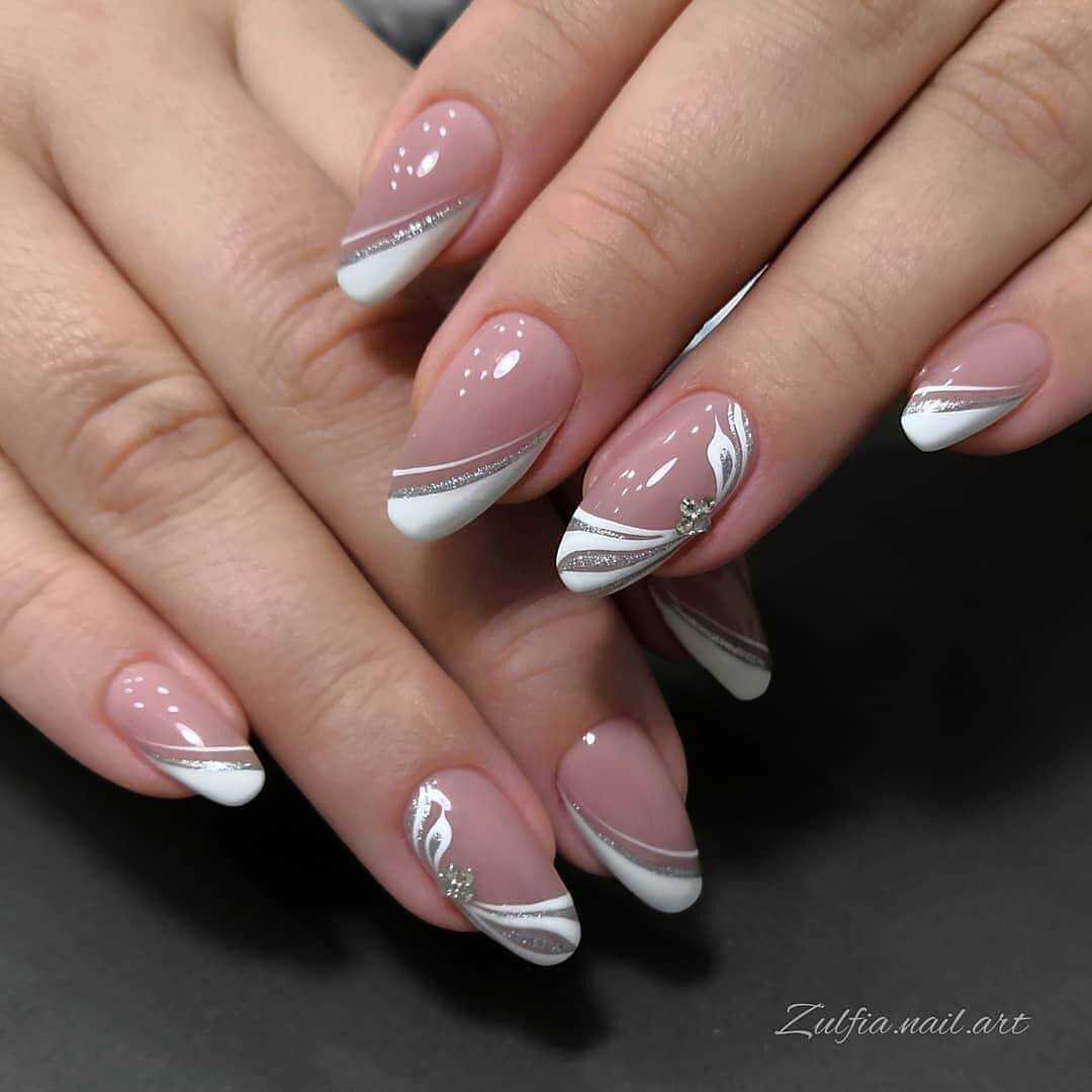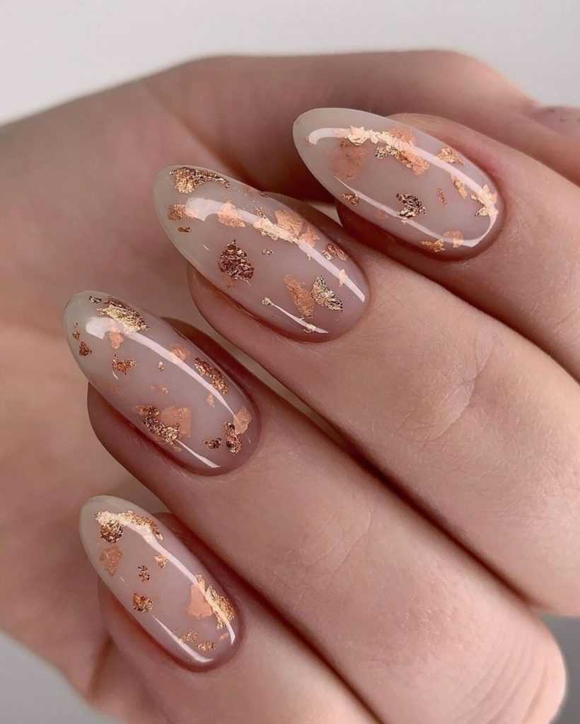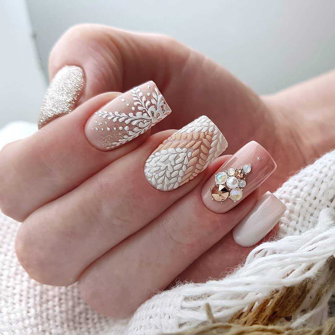 Для создания изысканного дизайна ногтей в виде «голый» маникюр 2019-2020 года смело используйте полоски, фольгу, блестки, камифубуки и камни, а также воспользуйтесь роскошным матовым покрытием и втиркой.