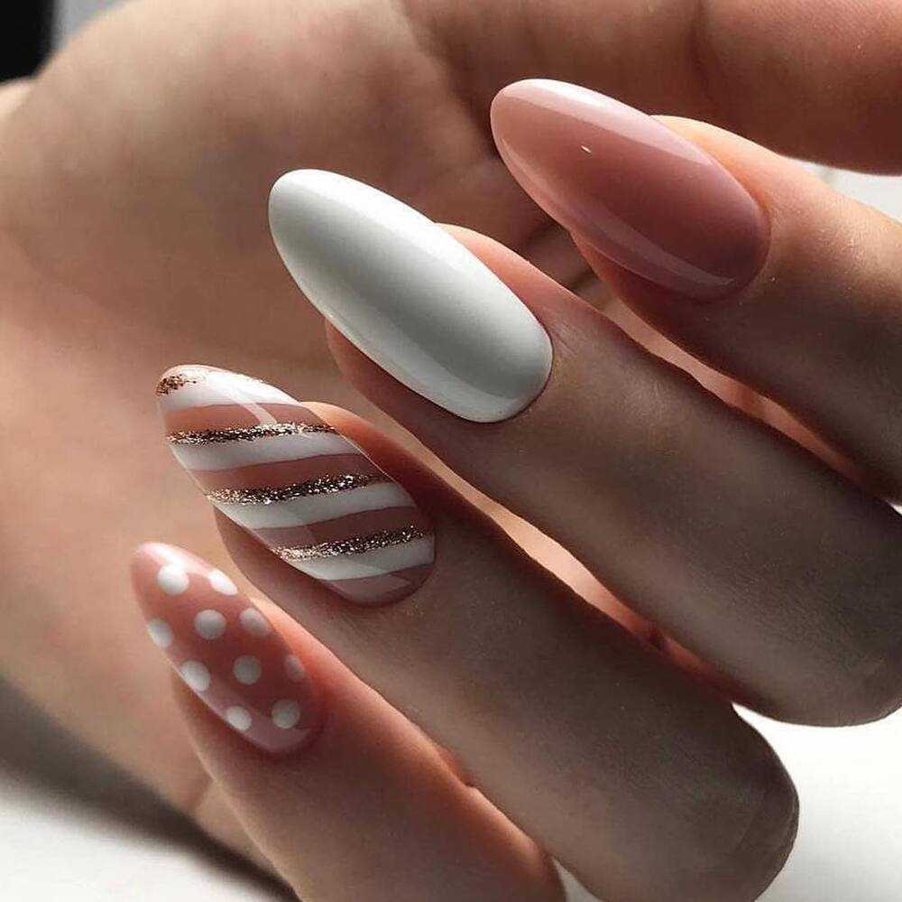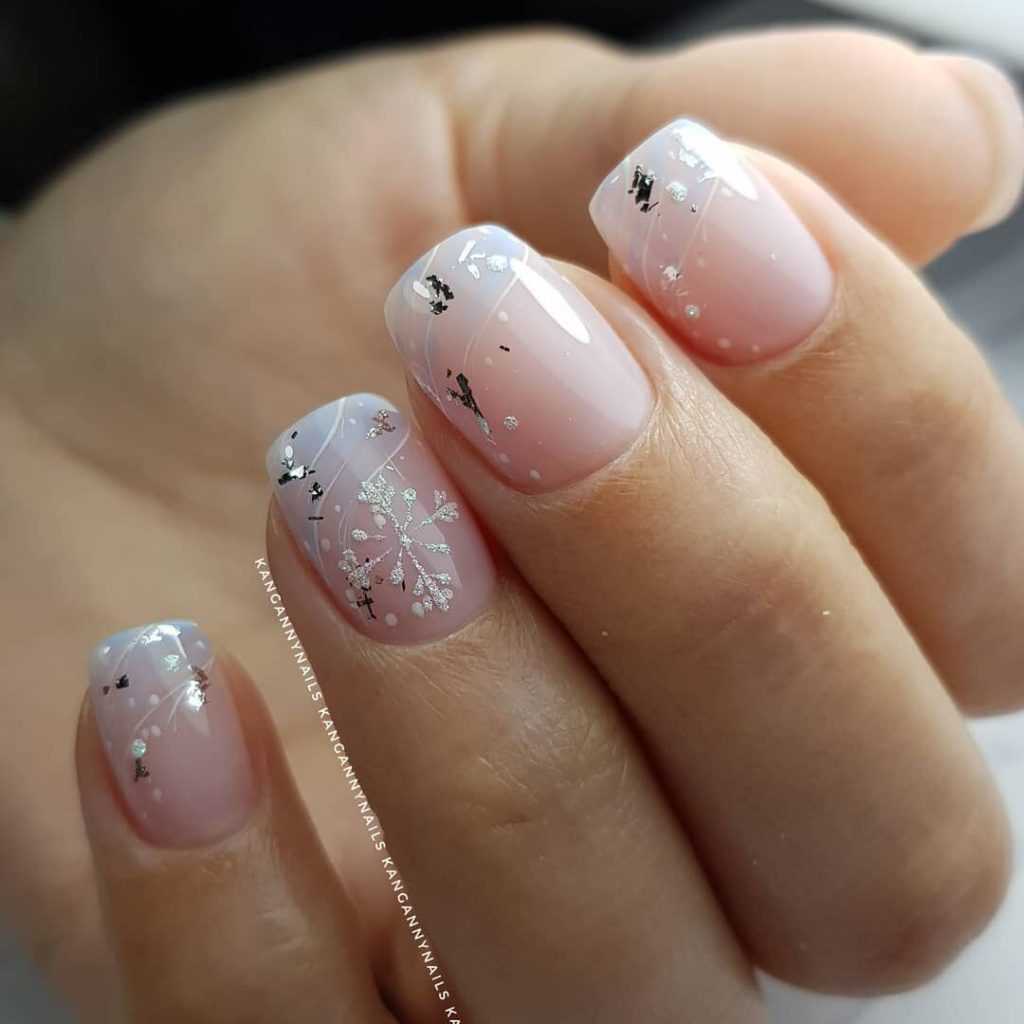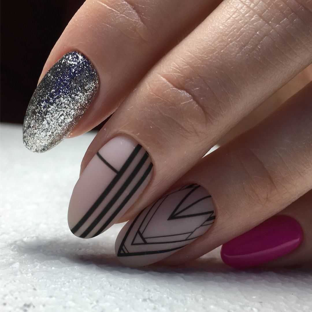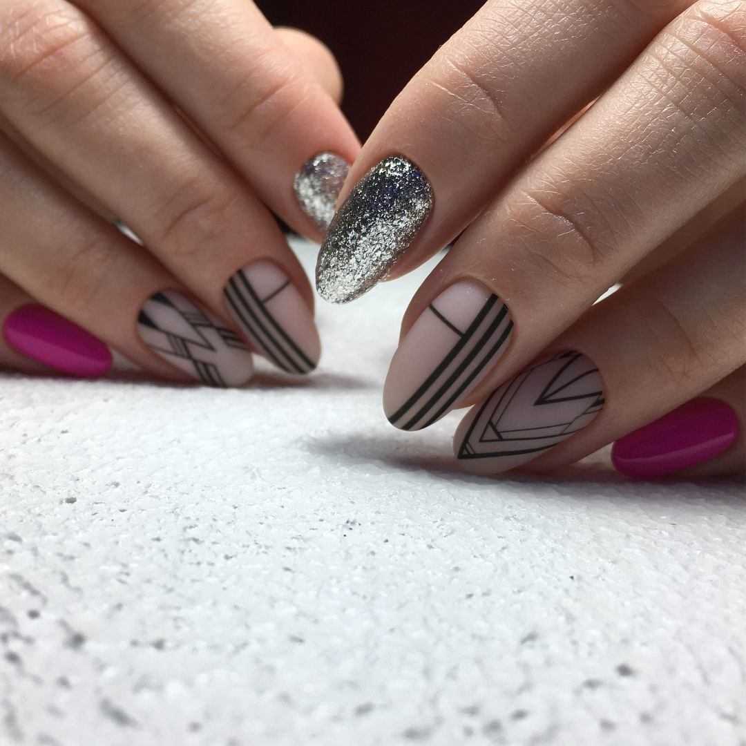 Для создания изысканного дизайна ногтей в виде «голый» маникюр 2019-2020 года смело используйте полоски, фольгу, блестки, камифубуки и камни, а также воспользуйтесь роскошным матовым покрытием и втиркой.