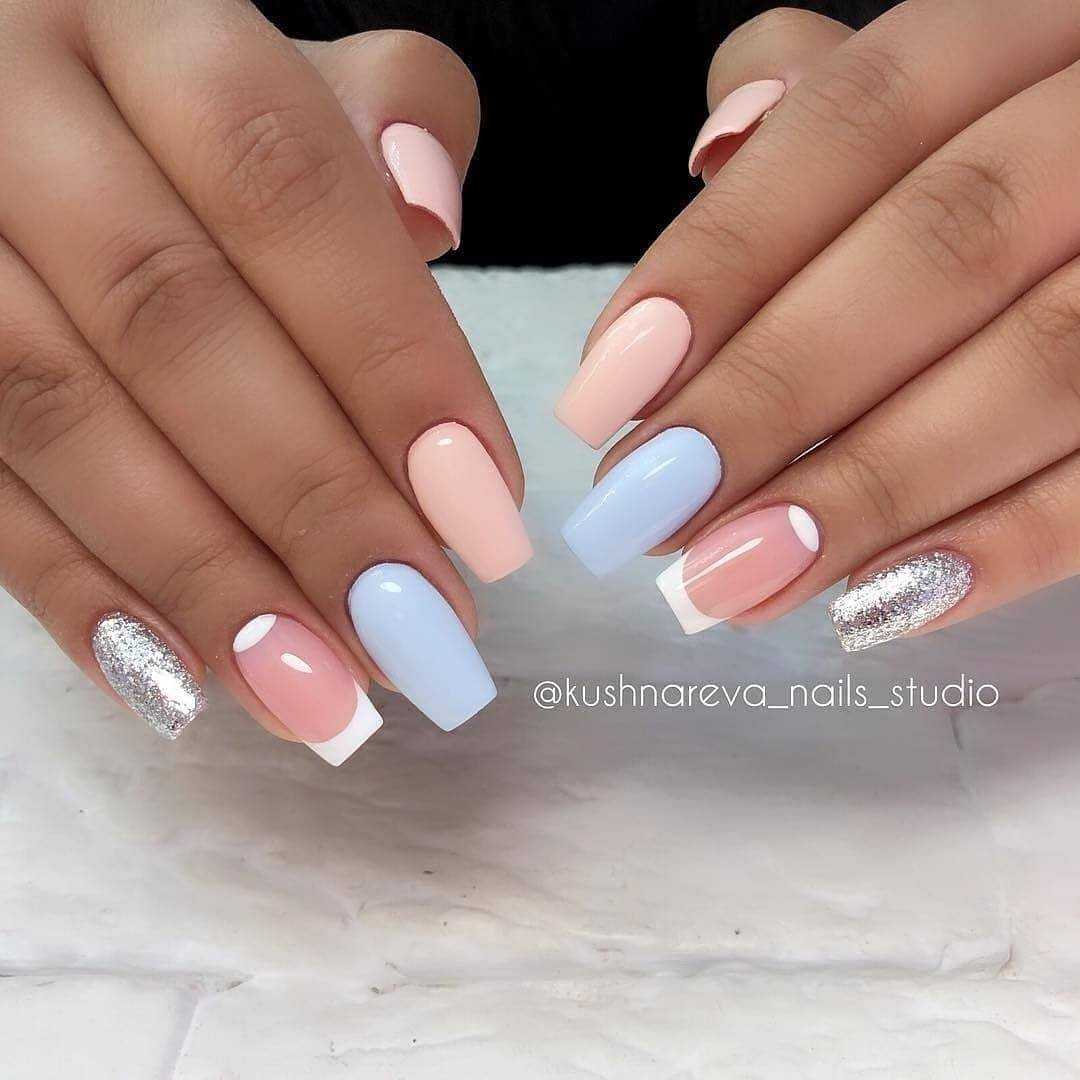 Что может быть прекраснее, чем маникюр с блестками для весенне-летнего сезона. Именно в эти сезоны маникюрщики наслаждаются возможностью экспериментировать с вариациями оформления ногтей коротких и длинных, сочетая глиттер и лак с блестками с однотонным лаком в нежных пастельных и более ярких теплых оттенках весны и лета. Преобладает розовый, бежевый, бирюзовый, белый, коралловый, голубой маникюр с блестками.