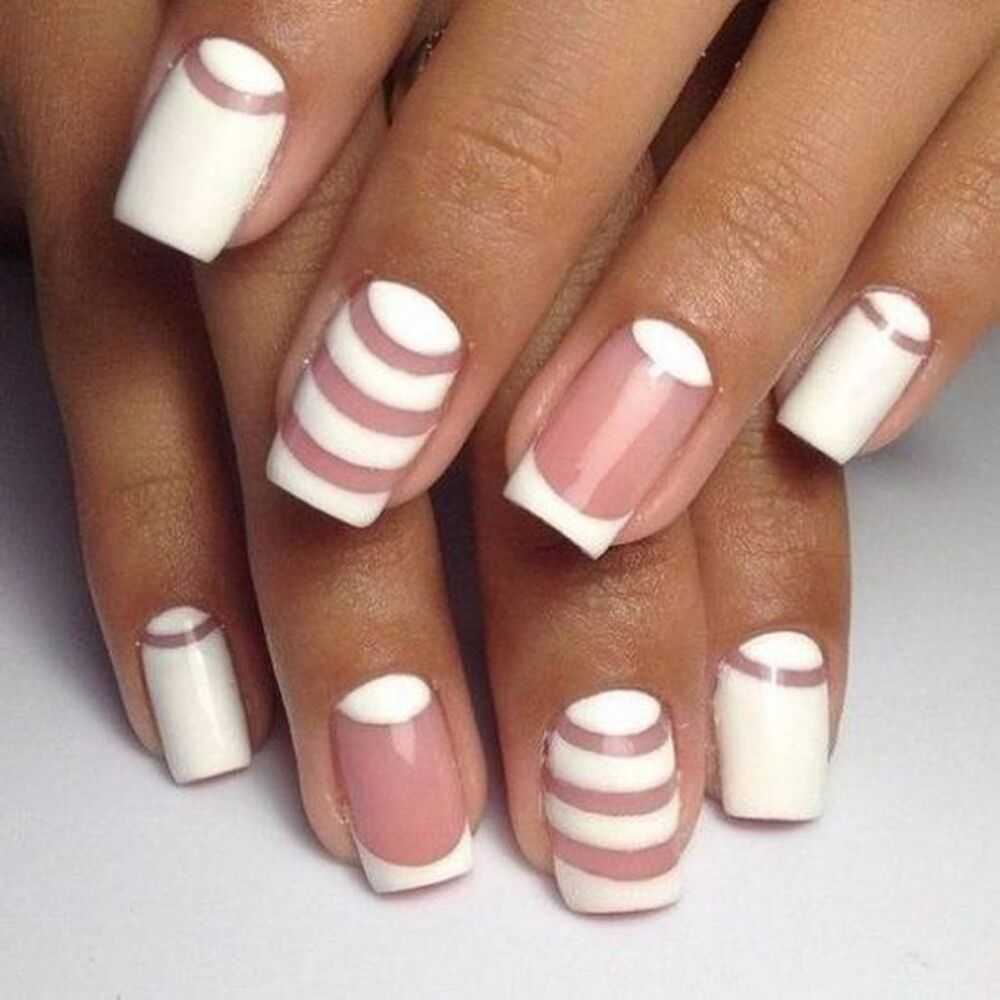 - Кончик ногтя украшается полумесяцем или полоской лака любого пастельного оттенка.