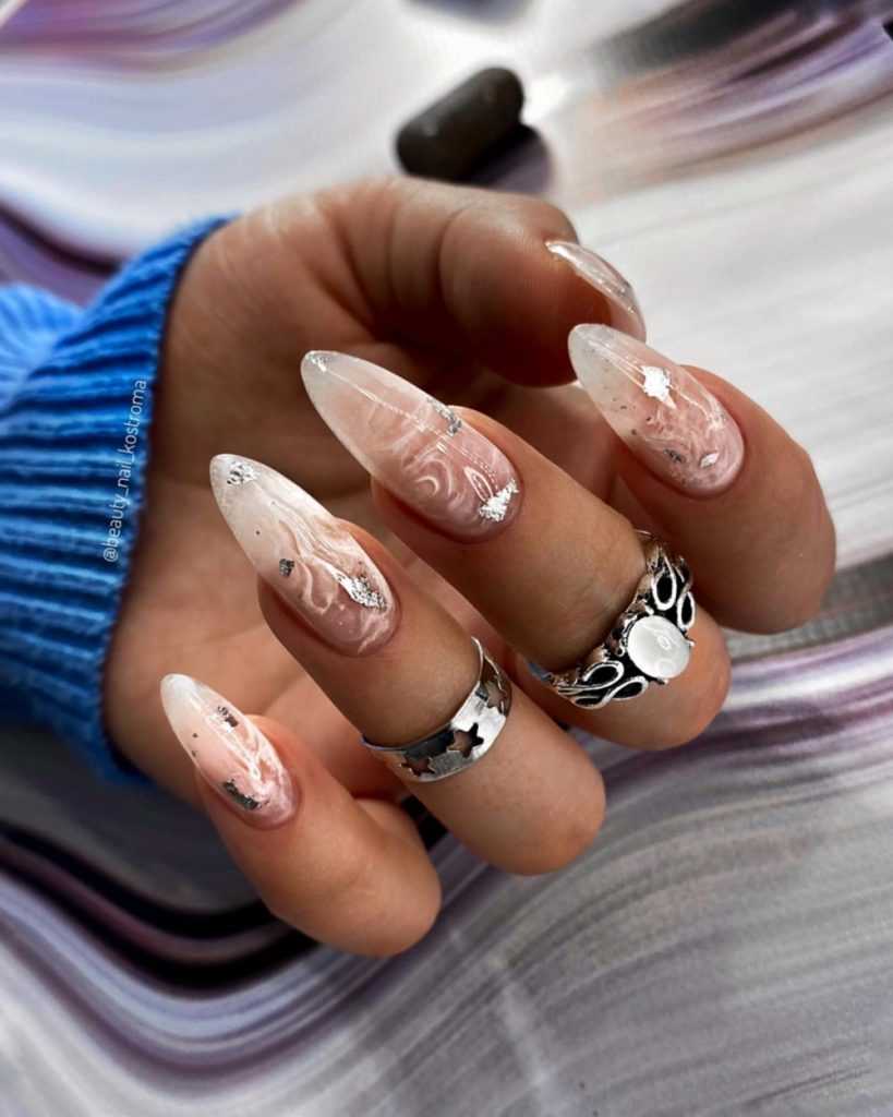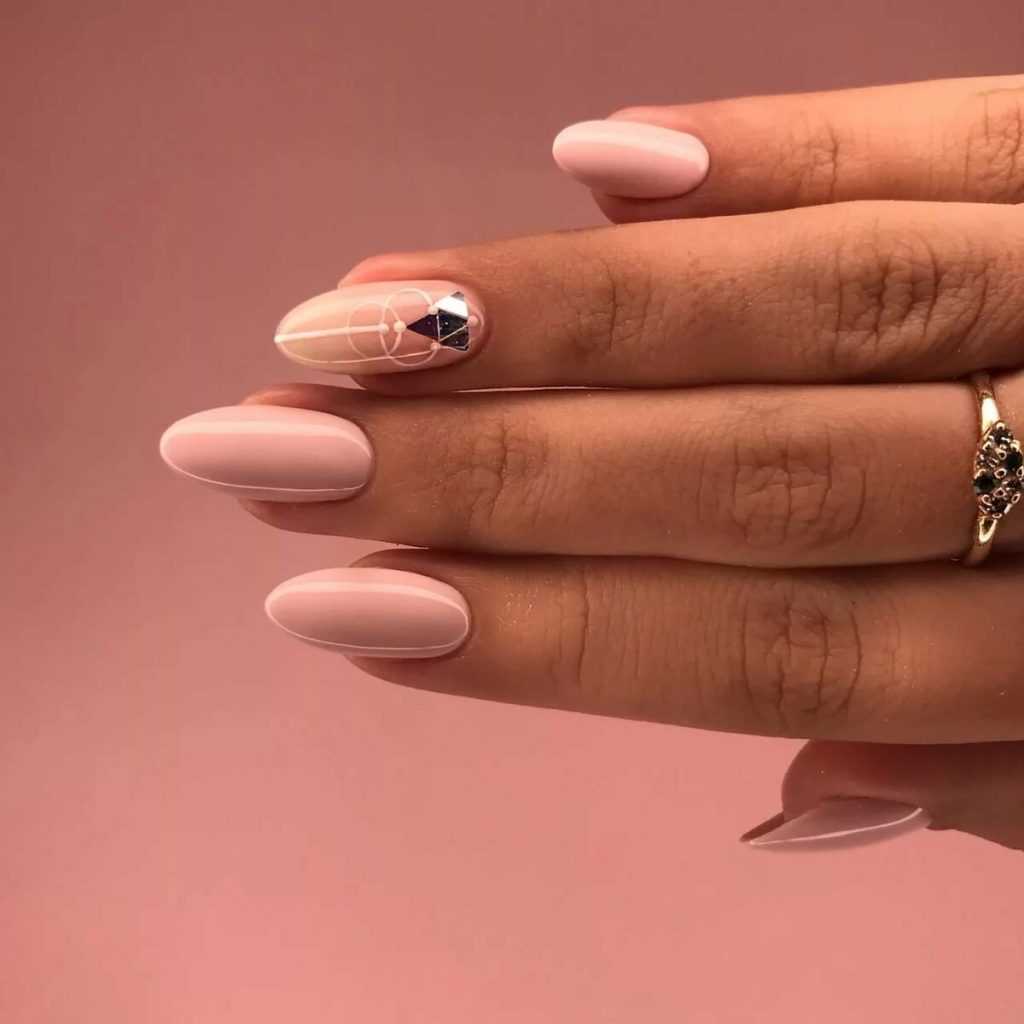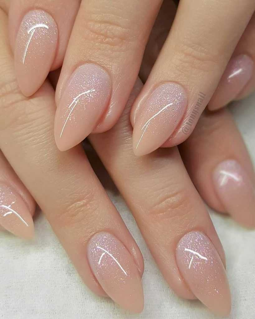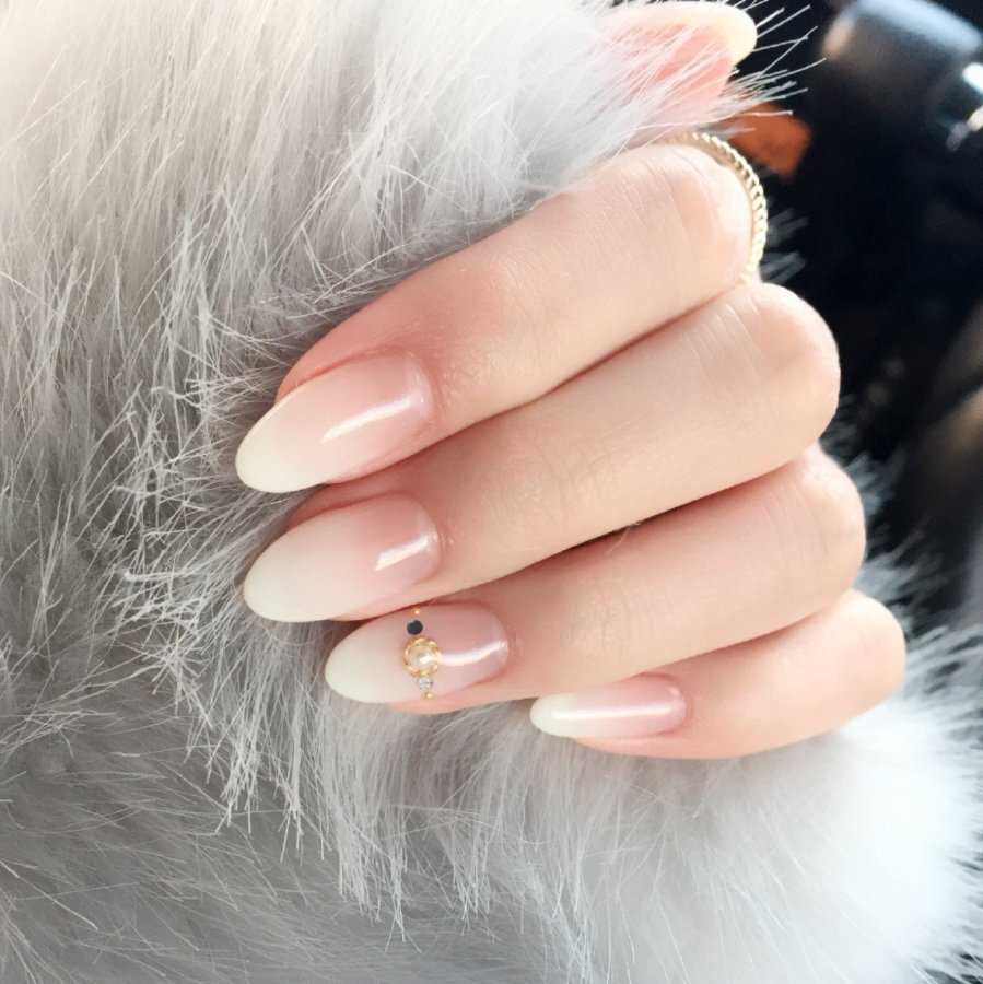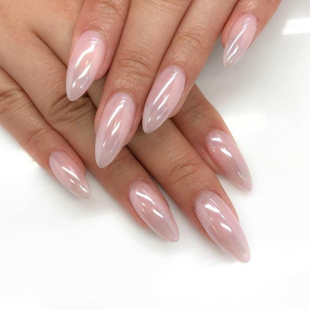 Эффектный «голый» маникюр 2019-2020 года на острые ноготки