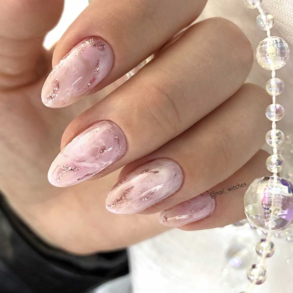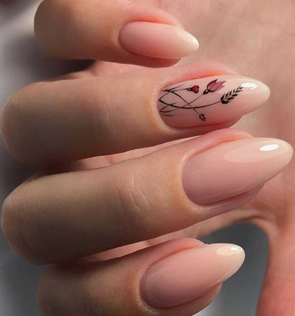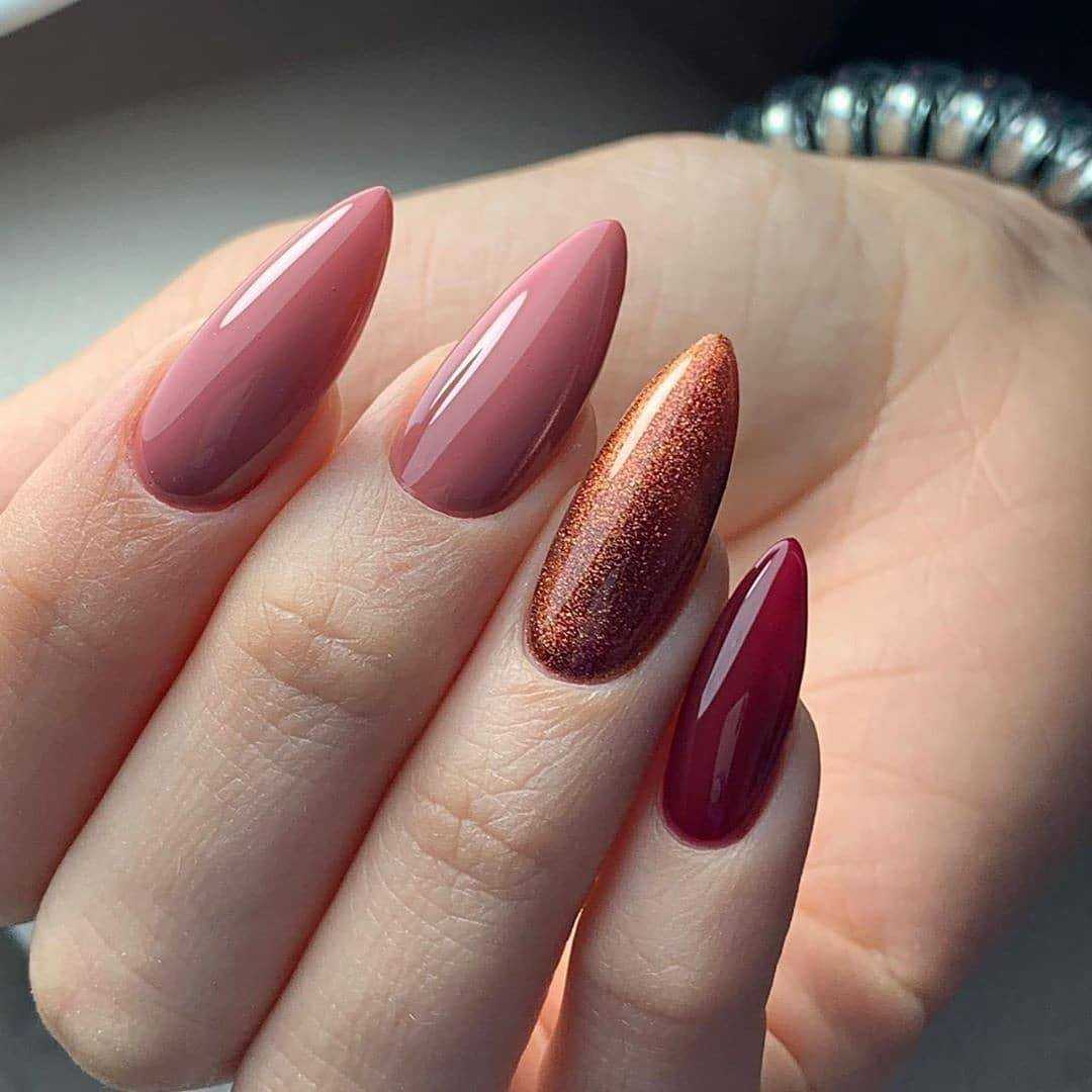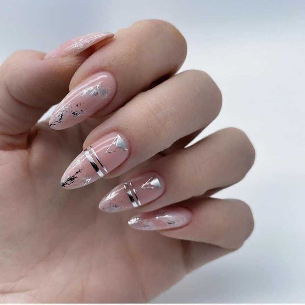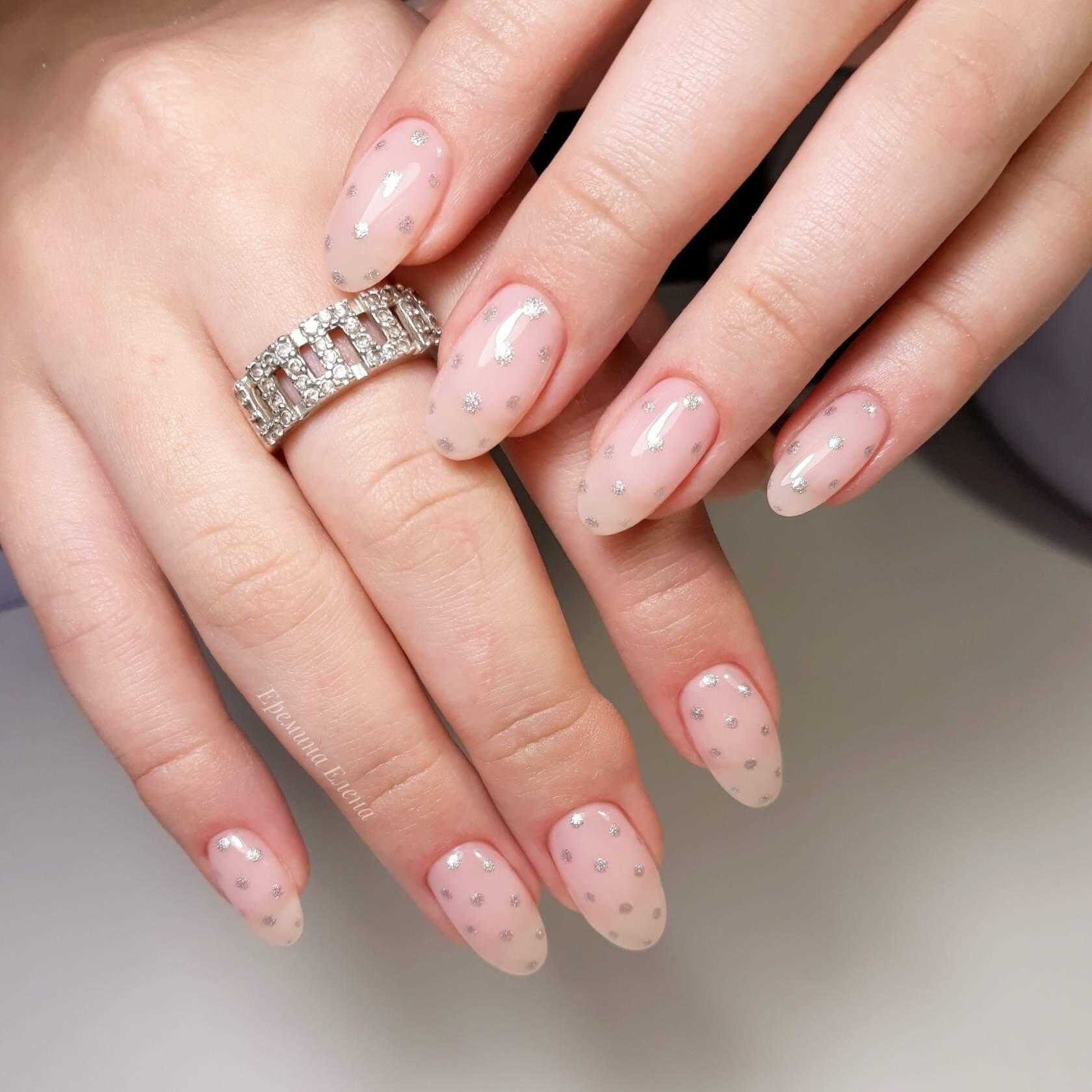 Эффектный «голый» маникюр 2019-2020 года на острые ноготки