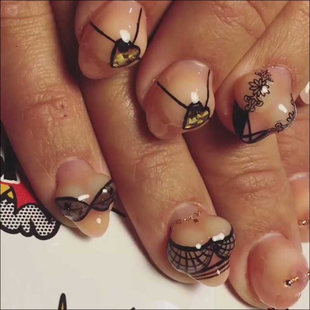 Романтическая готика. Для любительниц рисовать на ногтях сердечки. Чтобы излюбленное сердце не смотрелось слащаво или ванильно, сочетайте прозрачные сегменты сердец на черной гамме лака. Смотрится такое сочетание свежо и незаезженно.