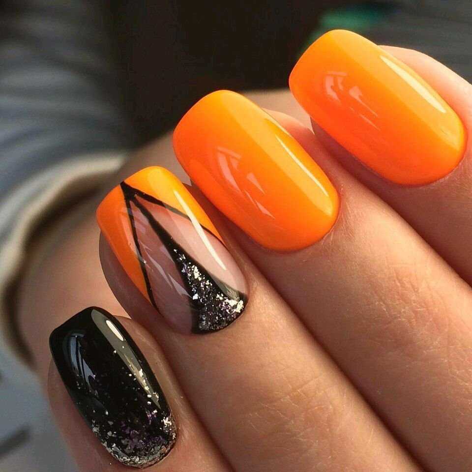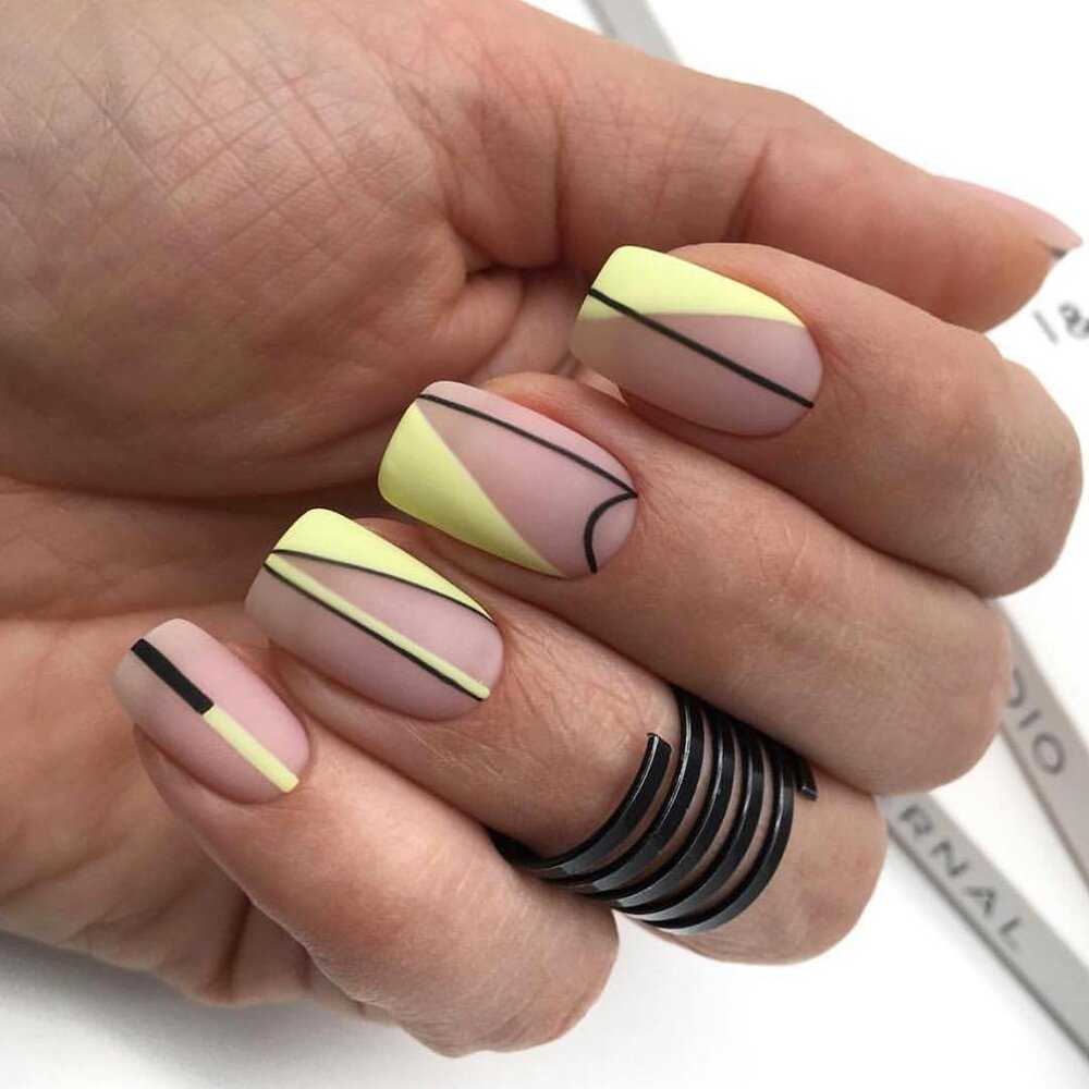 Контур черным. Данный nail art создается на основе контраста. Спокойные цвета сочетаются с яркими. Акцент в виде черного контура придает сегментам ногтя выразительности. Дизайн с черным контуром больше подходит молодым особам, позволяя самовыразиться, не выпадая из тренда.